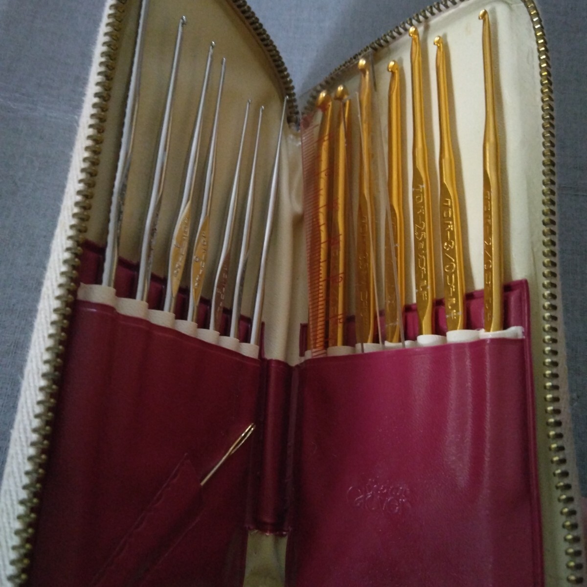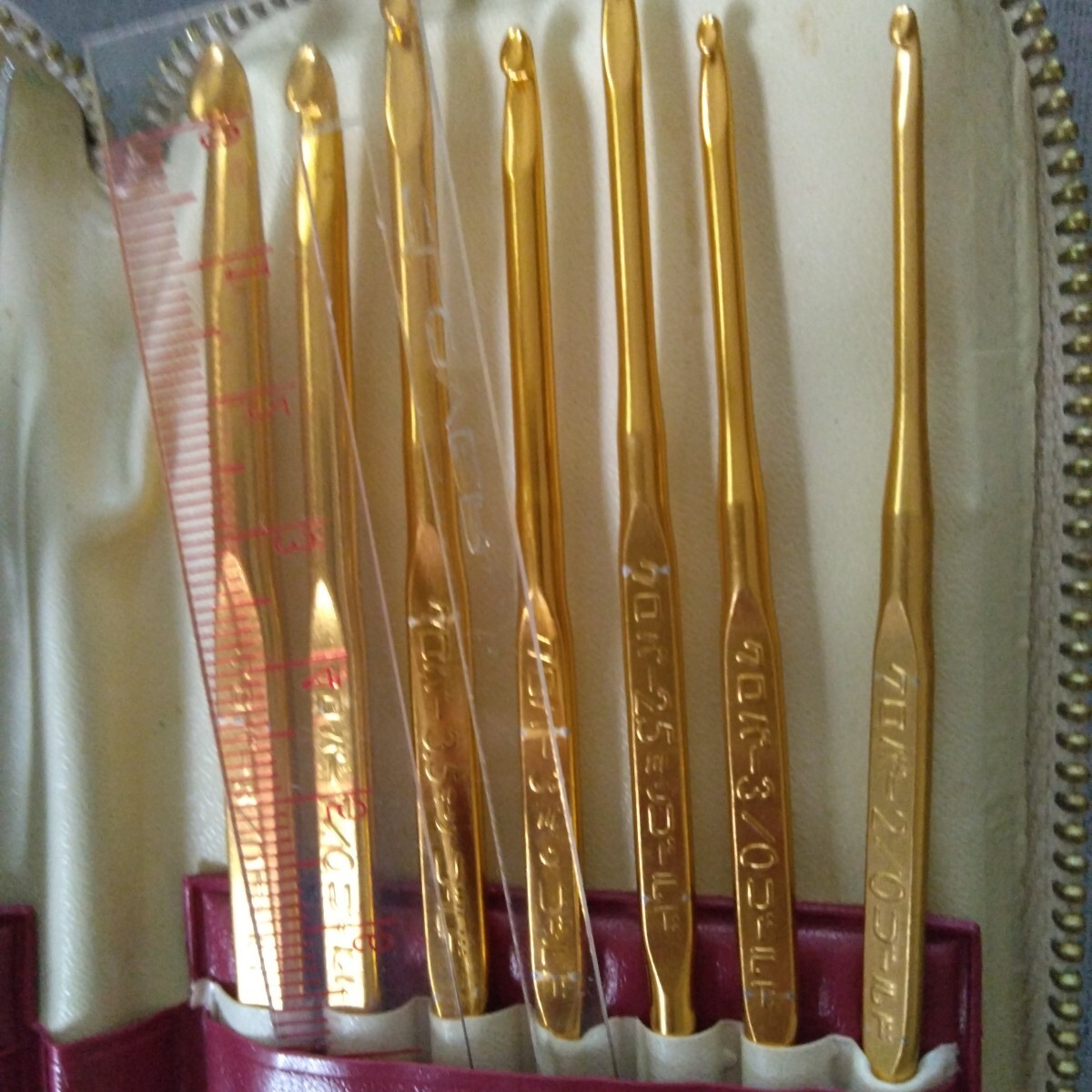 保管時に付いたスレが若干有ります。針も新品同様ではありません。ケースはあまり期待しないで下さい。中のかぎ針が使用できればOKという方のご入札をお待ちしています。
