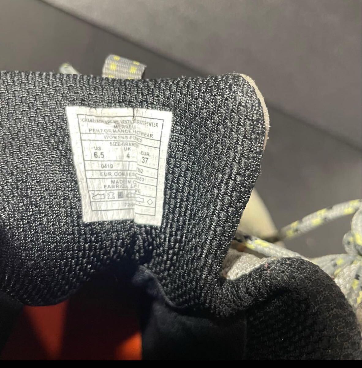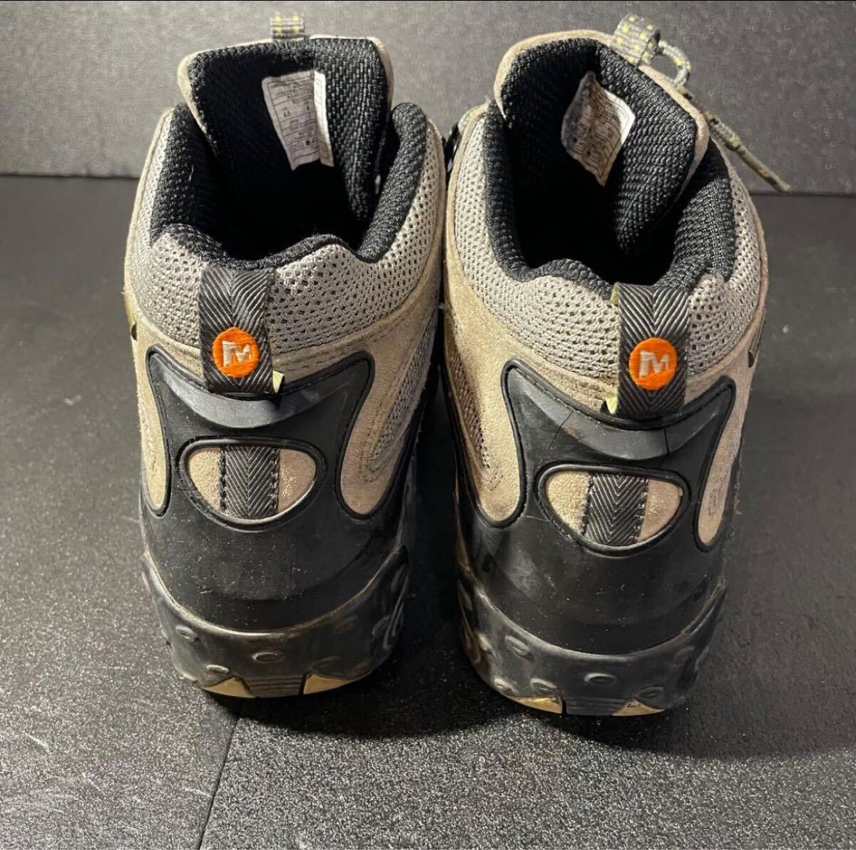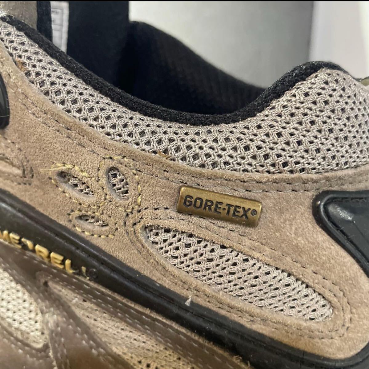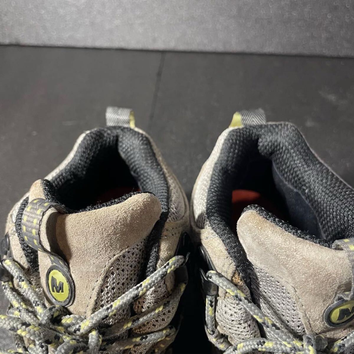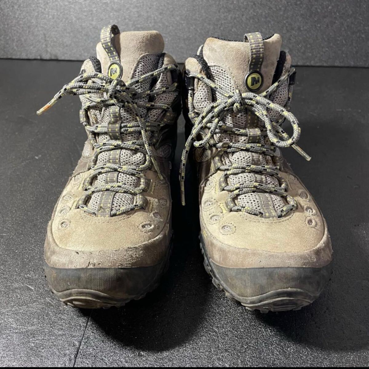 レザーとメッシュのハイカット登山靴、vibramソールで耐久性抜群。