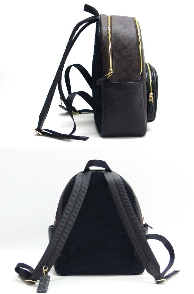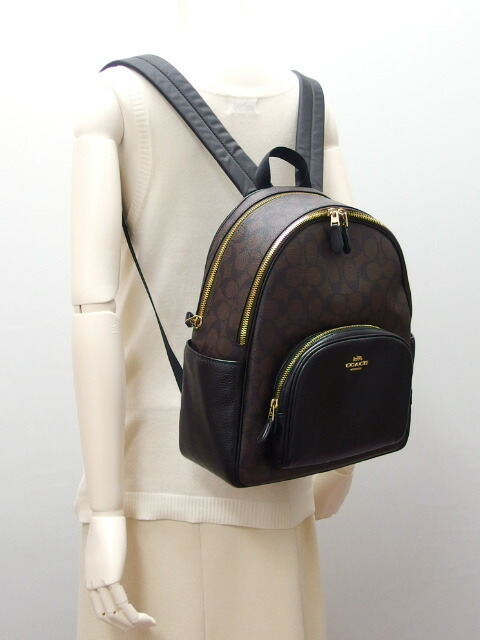 | 商品名 | シグネチャー コート バックパック リュックサック コーティングキャンバス ダークブラウン(こげ茶) レザー ブラック(黒) ダブルファスナー開閉 ゴールド金具 アウトレット レディース 5671 |
