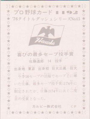 ★トレーディングカード★1976カルビープロ野球チップス★76タイトルダッシュシリーズ【#1192 佐藤道郎】★