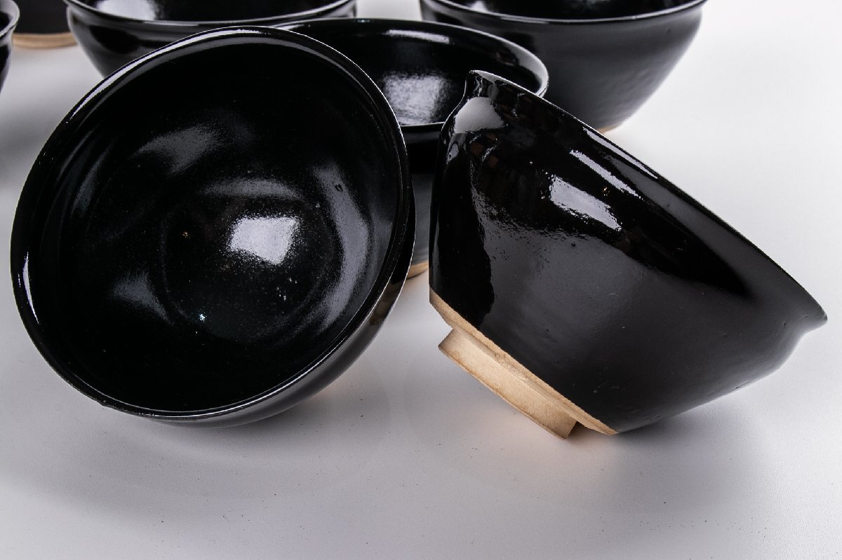 【うつわ】加藤麦袋 黒天目茶碗 10客 共箱 F043D 茶道具 古美術 骨董 古玩 日本料理 懐石 料亭