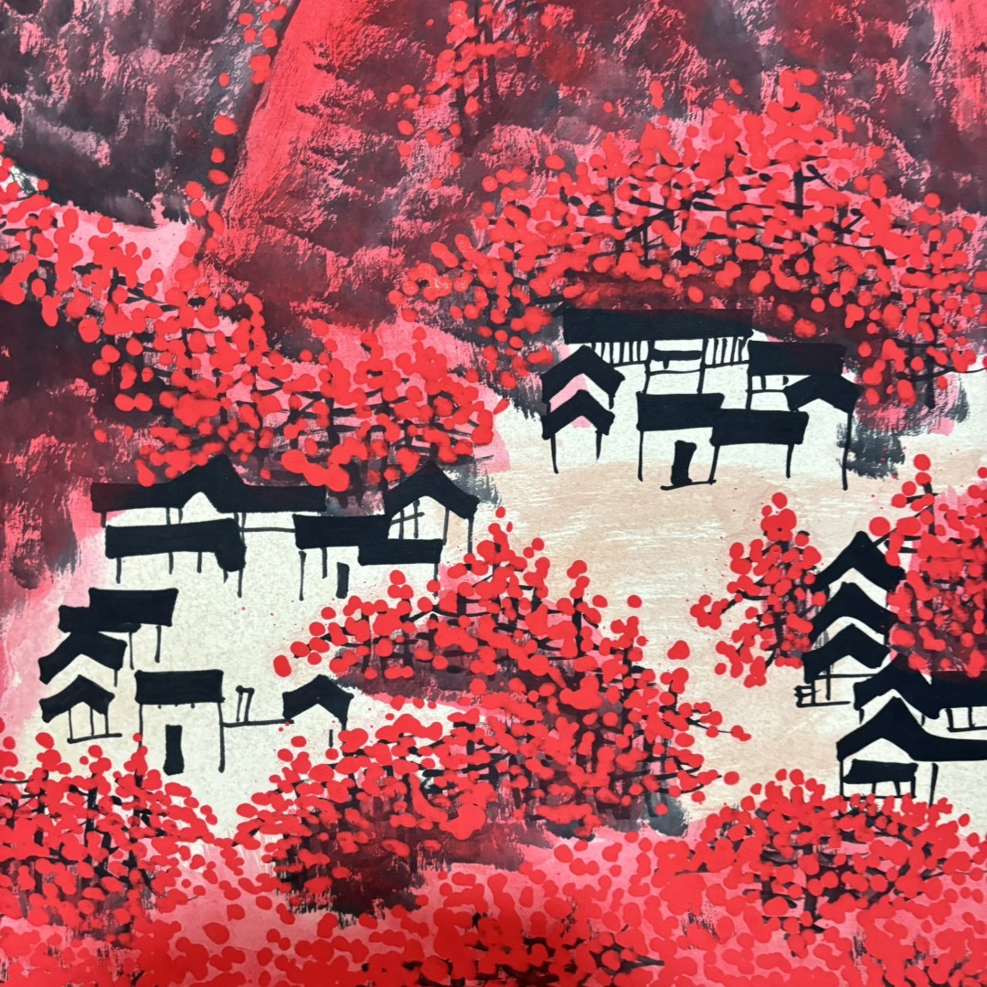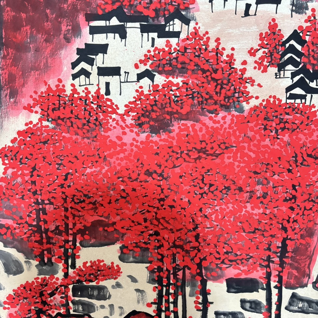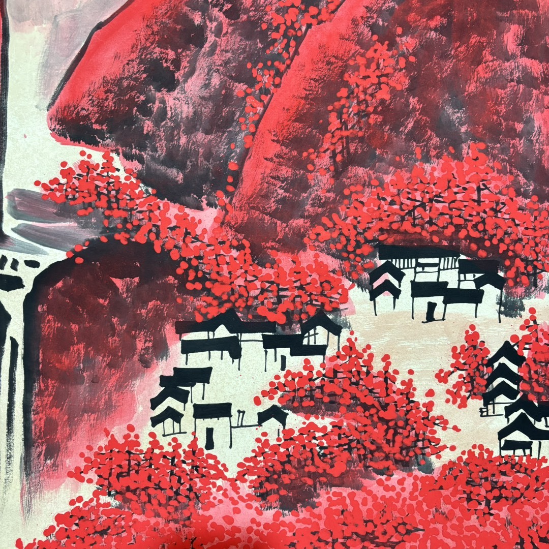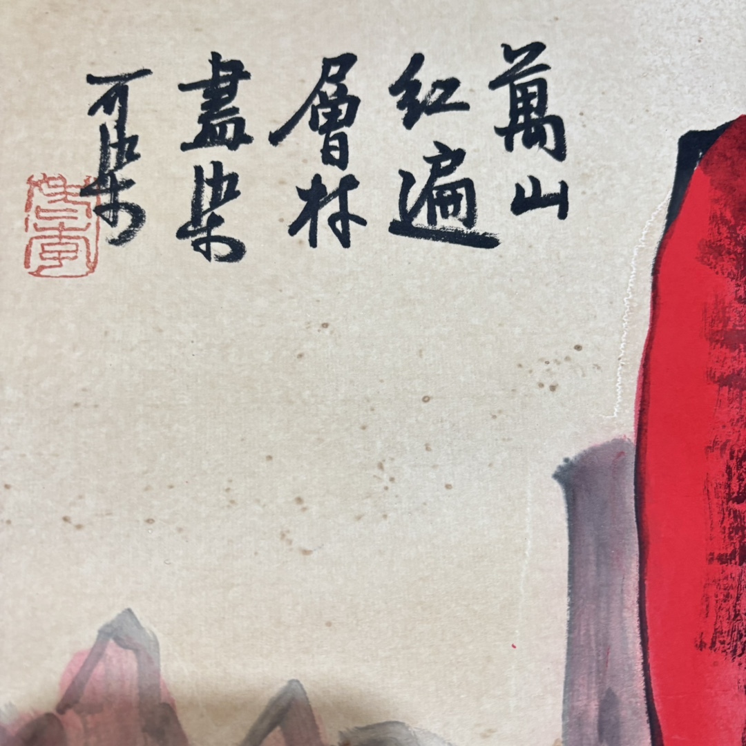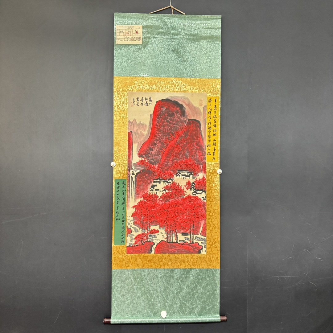 【超珍館蔵】 中国字画 四尺中堂画 萬山片紅画 肉筆紙本 掛軸 壁掛 立軸 古董品 中国古玩 時代物 稀少珍品 中国時代美術