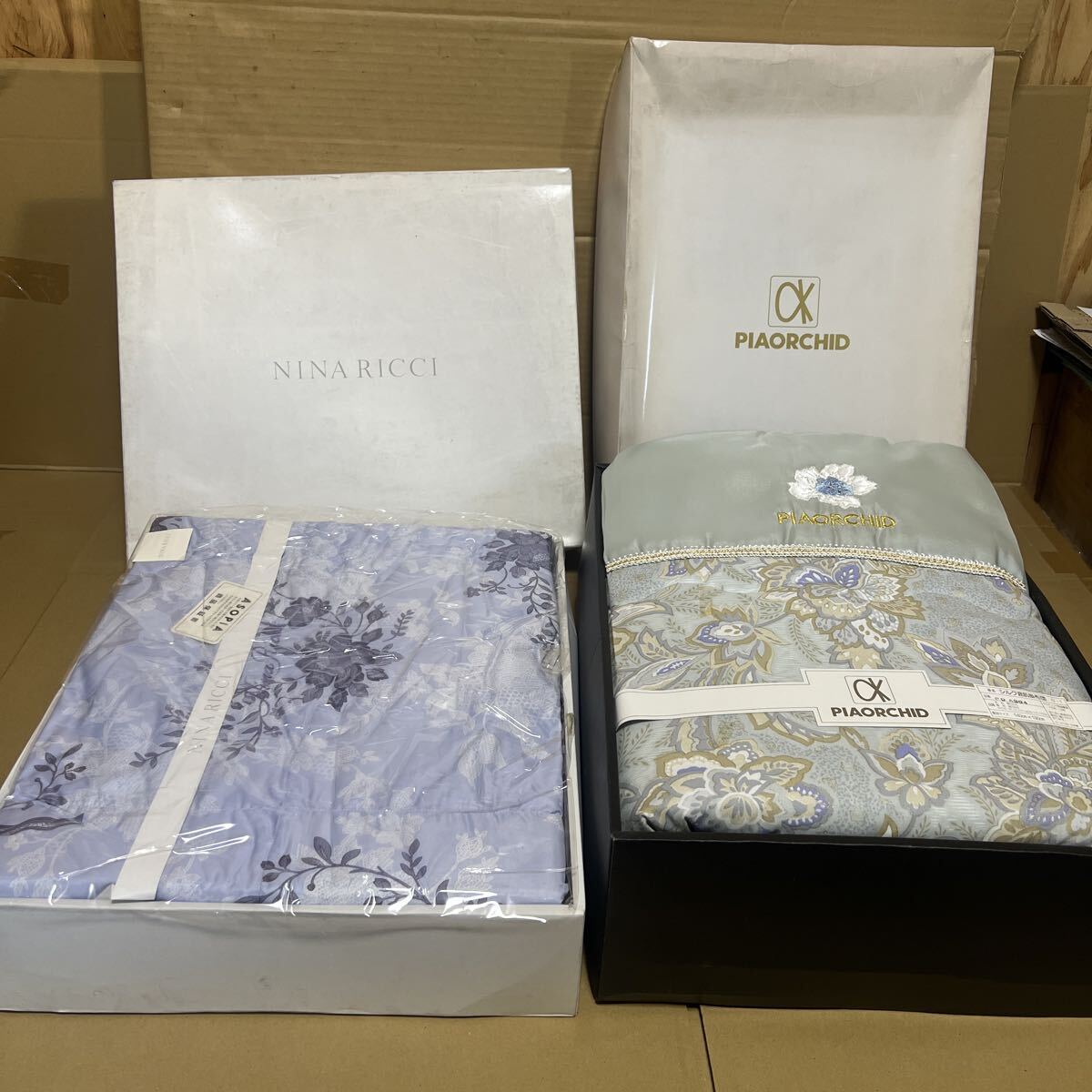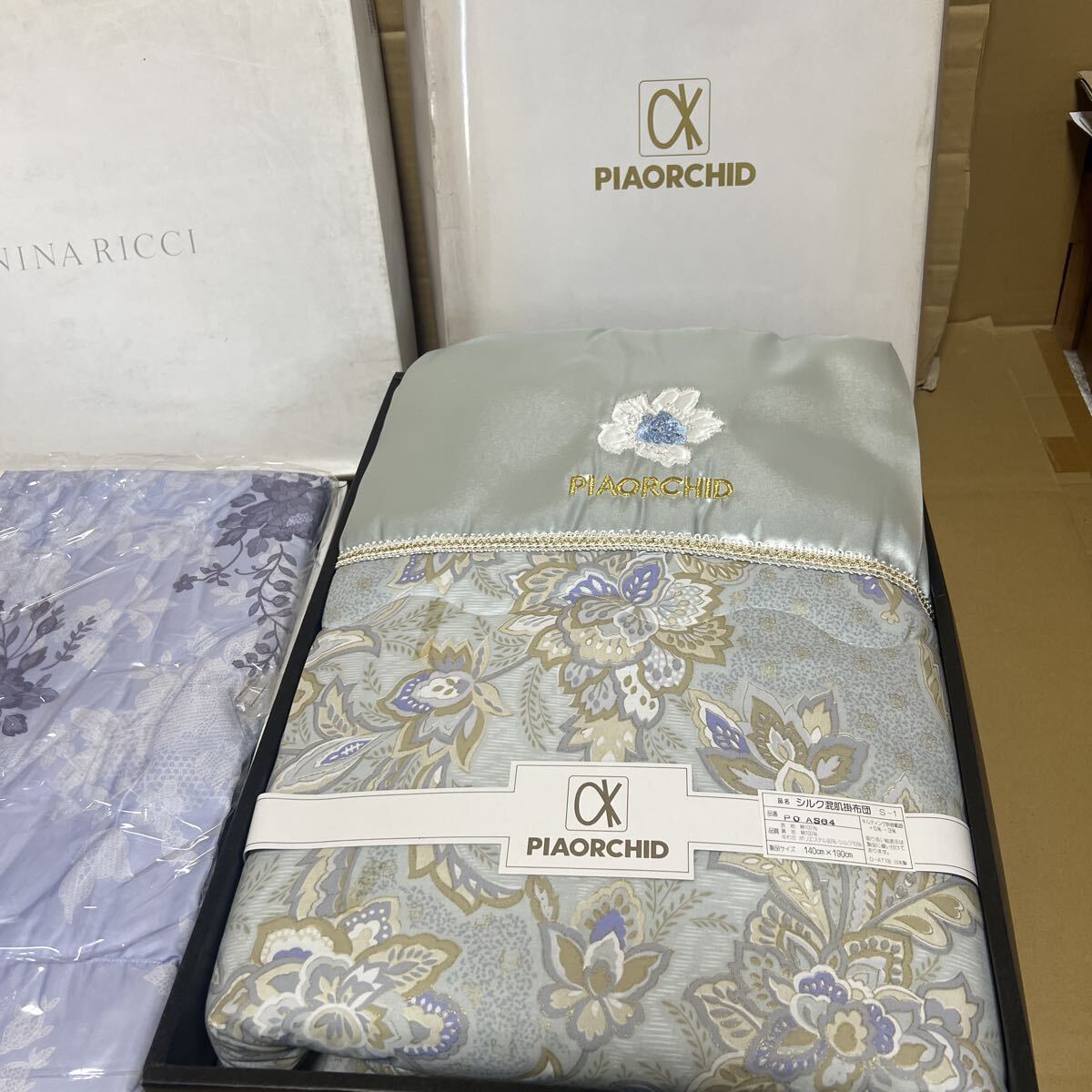 寝具未使用 NINA RICCI ニナリッチ 洗える羽毛肌掛けふとん 花柄 日本製 シルク混肌掛け布団 2個 692