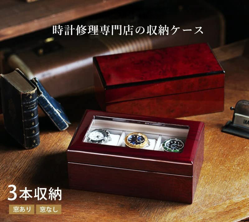 【蓋を閉じて文字盤の日焼けをしっかり防止】 腕時計ケース 高級時計 ボックス 3本収納 木製ギフト 劣化防止 プレゼント メンズ レディース