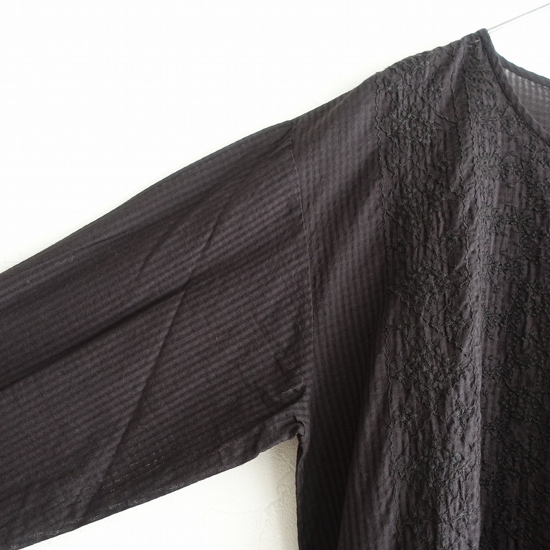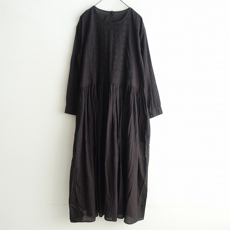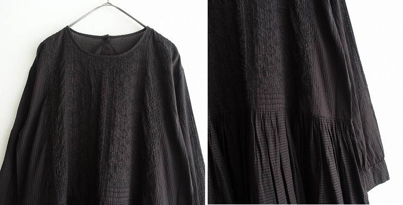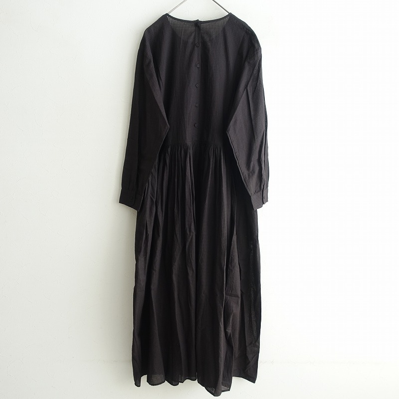 | maison de soilのオーガニックスモールチェックバックオープン刺繍ドレスです。カラーは墨黒です。オーガニックコットンを使った、少し透け感のある軽やかなチェック柄の甘織りボイル生地を使用。背部のクルミボタン開きです。フロント上身頃に刺繍があしらわれております。ウエストと袖口にギャザーが寄せられ、袖口カフスは1ボタン留め、腰両サイドにシームポケットがございます。定価(メーカー希望小売価格)31,900円の商品です。 |