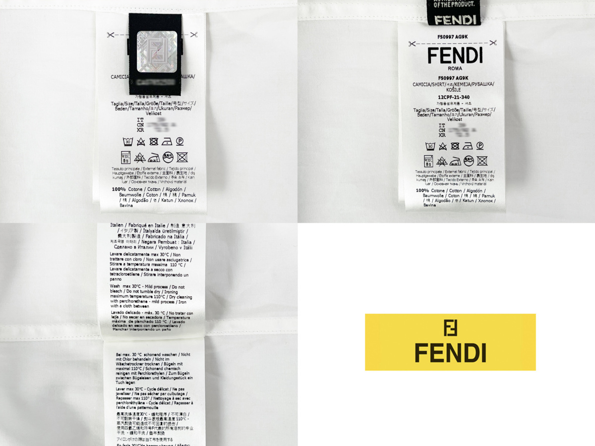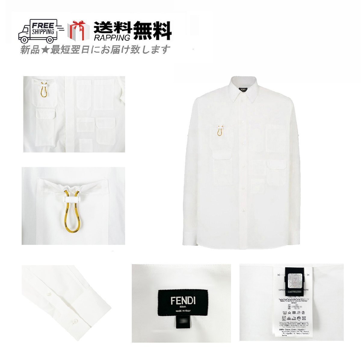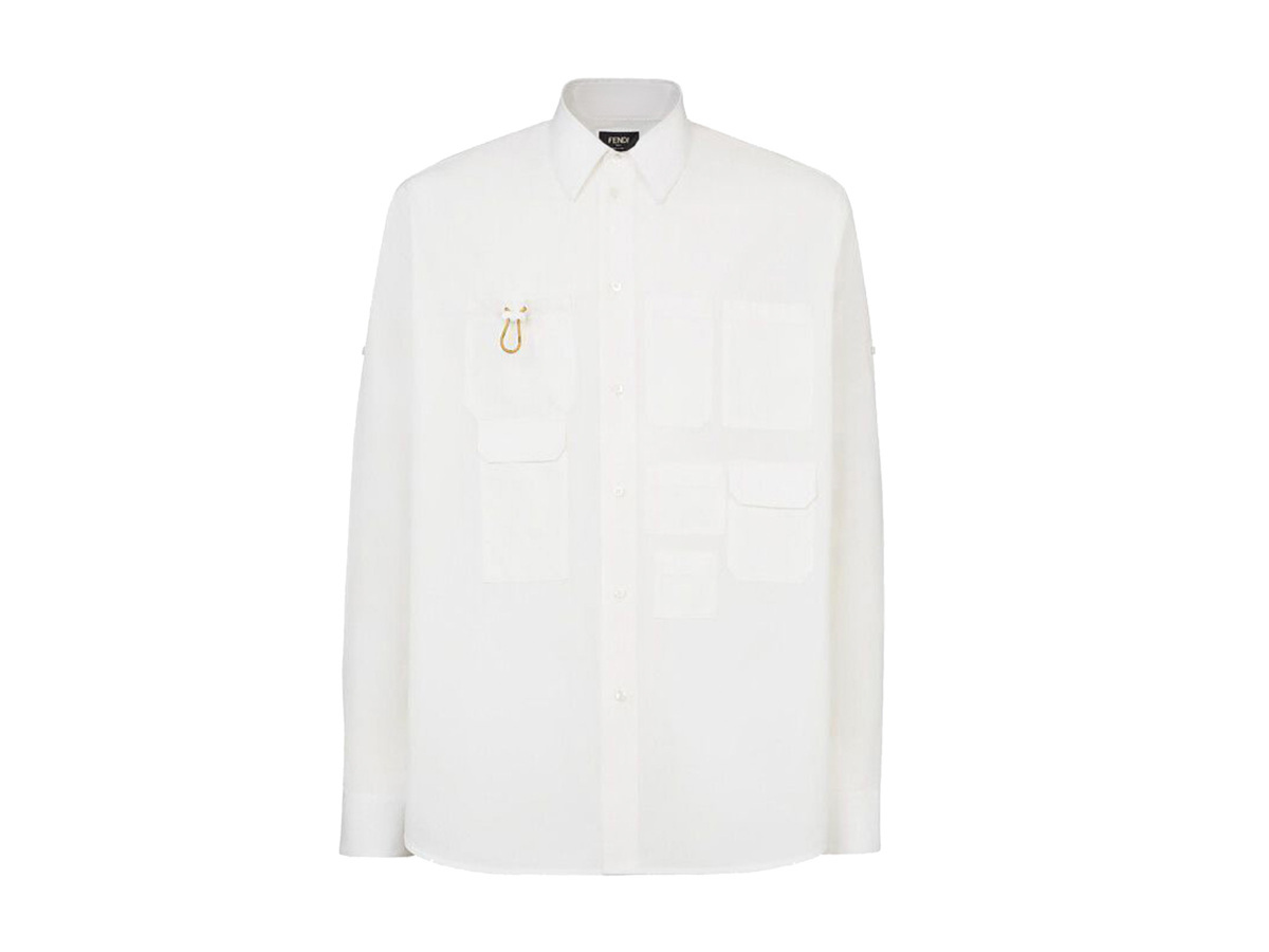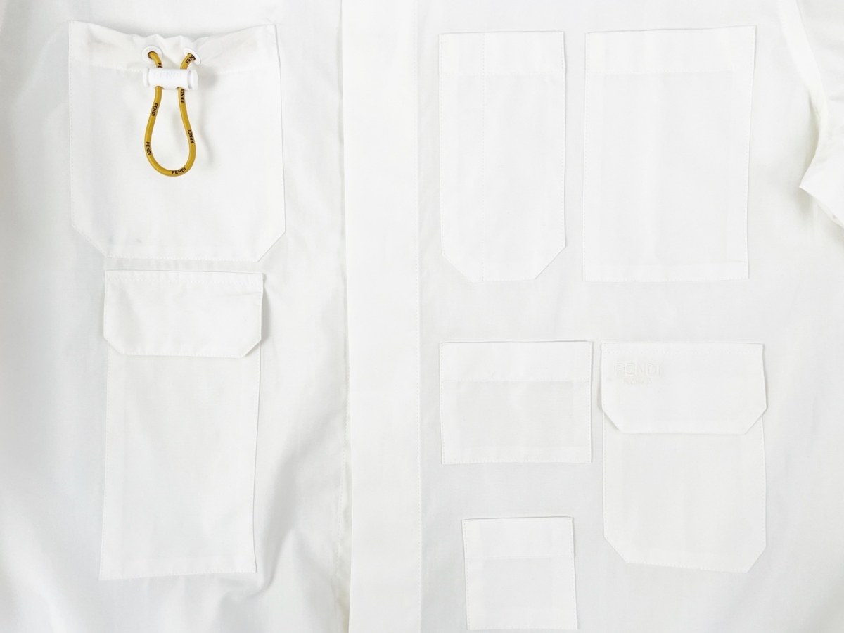 I819(39).. FENDI フェンディ シャツ 長袖 ロゴ ポケット デザイン イタリア製 FS0997 AG9K F0AU5 ★ ホワイト