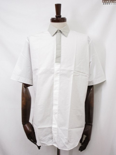 美品【エルメス HERMES】 コットン100% バイカラー 比翼ボタン半袖シャツ (メンズ) size15(3/4)/40 白×灰 フランス製 ◇33MK6338◇