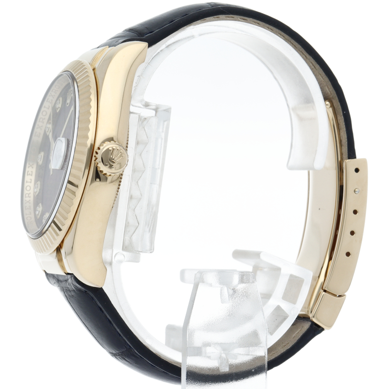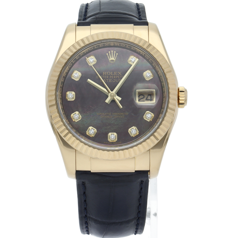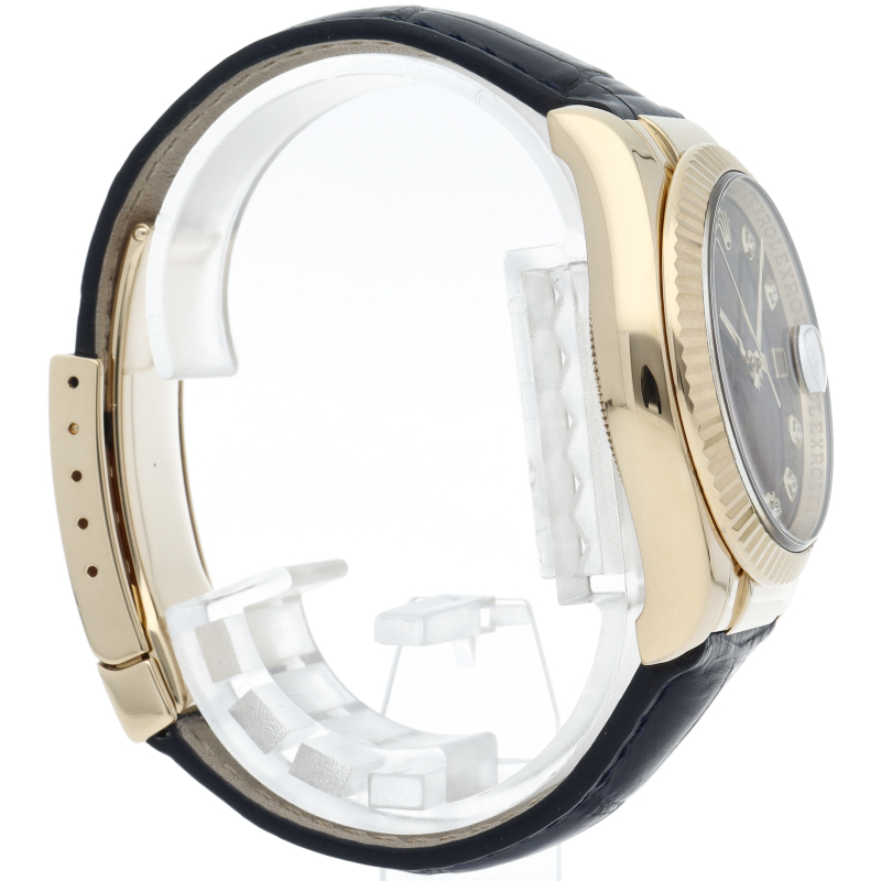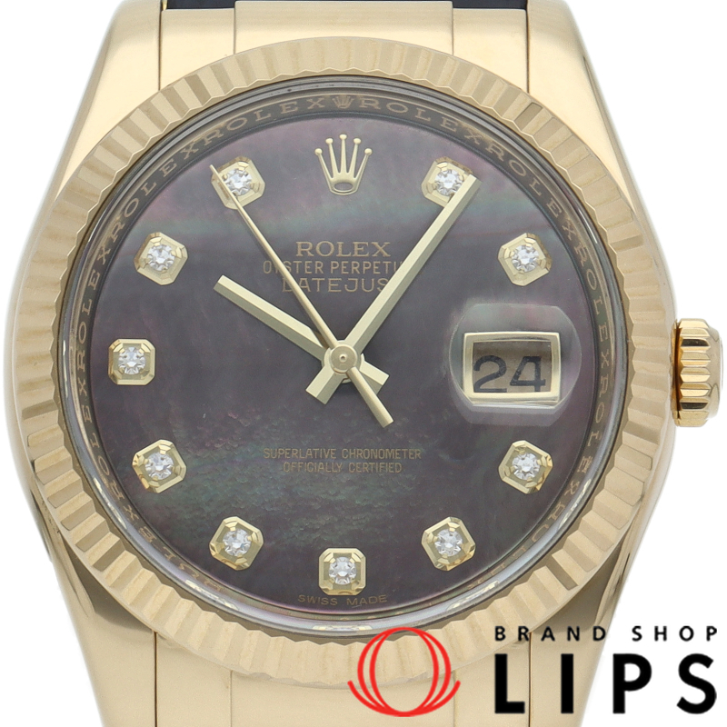 ロレックス デイトジャスト メンズ時計 10Pダイヤ ブラックシェル OH済 116138NG(F) 箱 保証書 K18YG/革