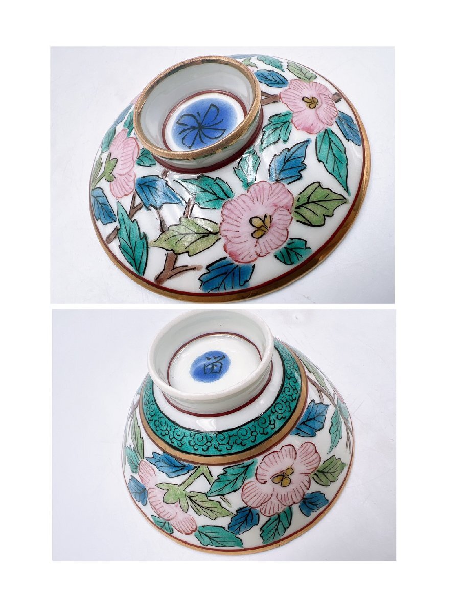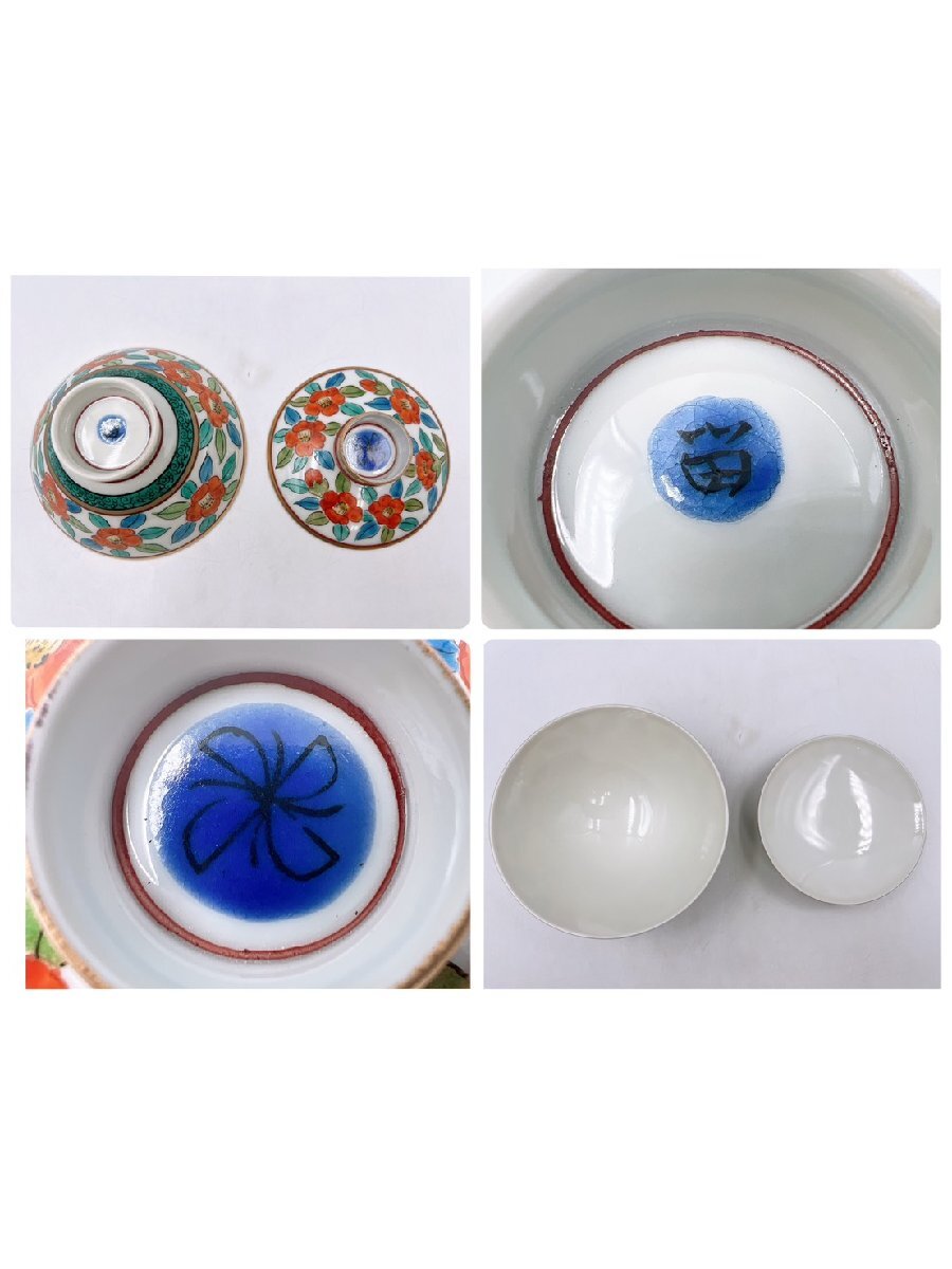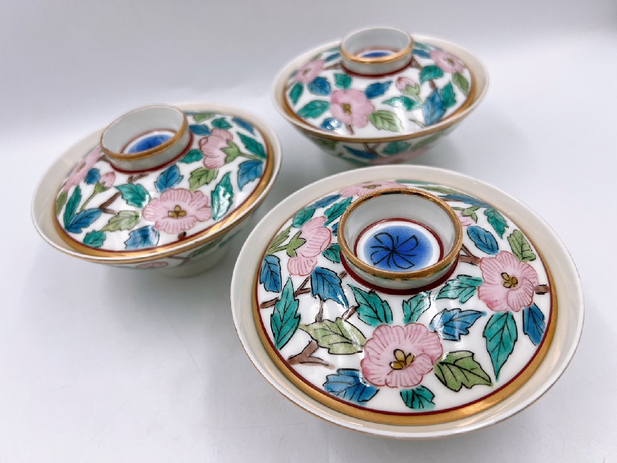 九谷焼作家さんから蔵出しされた蓋付茶碗ピンク色3客、赤色6客、計9客セットのお品です。