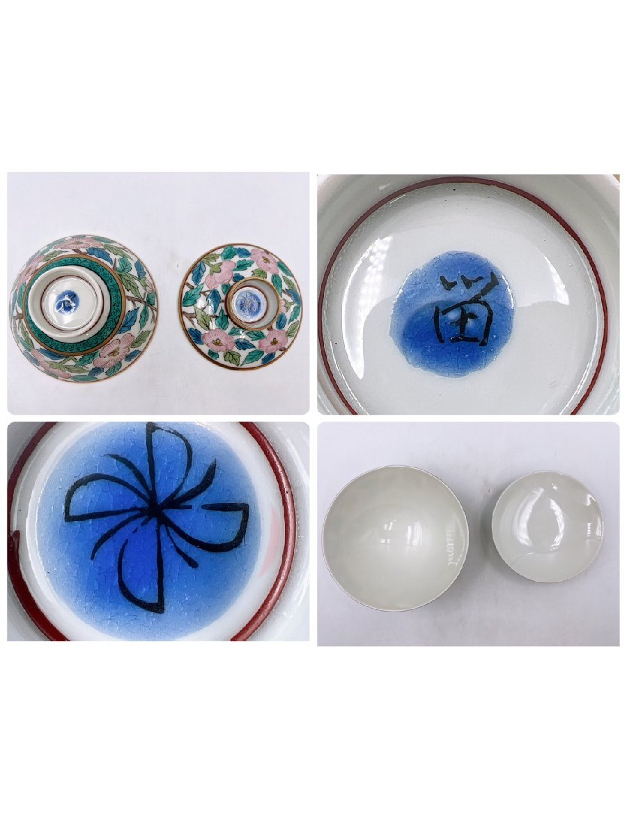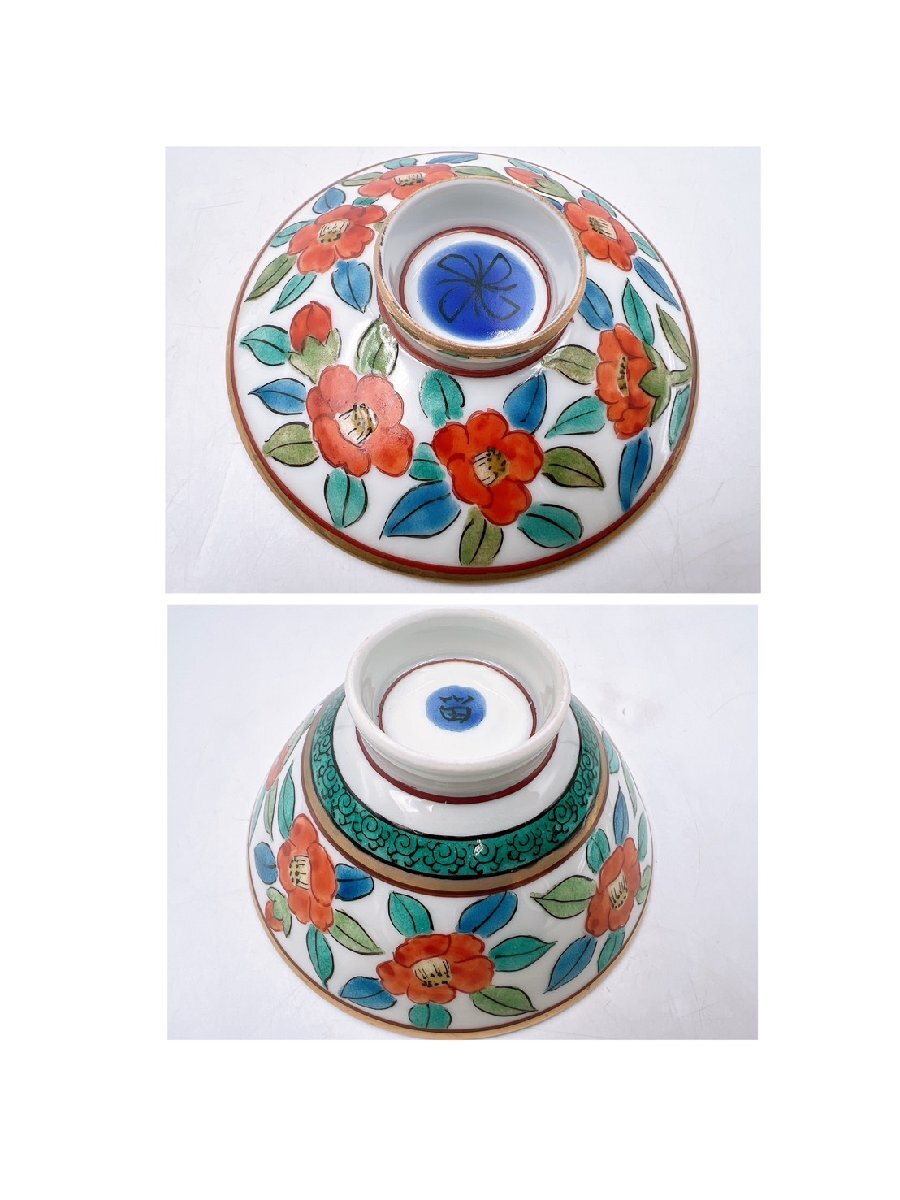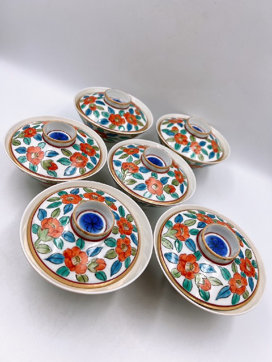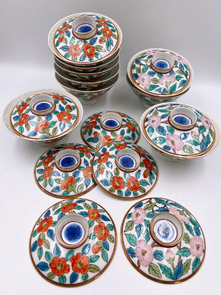1円スタート 九谷焼 作家 蔵出し 蓋付茶碗 9客セット 現状保管品 【TO008】