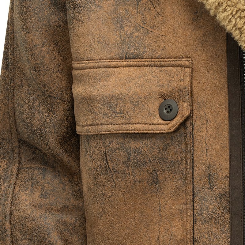 イタリア製の高級メンズレザージャケット。上質な羊革を使用し、内側は皮毛一体構造で抜群の保温性を誇ります。柔らかくしなやかな質感ながら、肉厚で防風性にも優れ、冬の寒さからしっかりと身体を守ります。