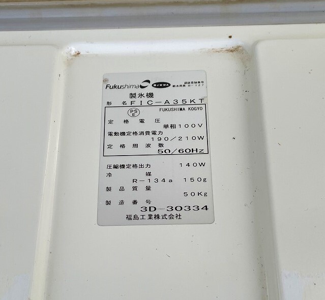 | 製品名 AA-251 業務用 フクシマ 製氷機 FIC-A35KT 2013年製 100V W500xD400xH800 店舗用品 厨房 中古 |