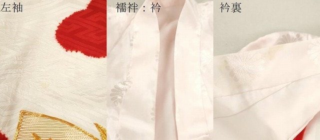 | 【祝着】 身丈 82.5cm(肩から) 裄丈 43cm(肩上げ 2.5cm) 袖丈 56.5cm 縫込み 2.5cm 袖幅 32cm 前幅 15cm 後幅 16.5cm 着物縫いこみ 内揚げ 0cm (腰上げ 7.5cm) 裄 お袖側 約1.5cm 身頃側 約1.5cm 【長襦袢】 身丈 79.5cm(肩から) 裄丈 40.5cm(肩上げ 2.5cm) 袖丈 56cm 縫込み 3.5cm 袖幅 30cm 前幅 14cm 後幅 16cm 着物縫いこみ 内揚げ 0cm (腰上げ 8.5cm) 裄 お袖側 約1cm 身頃側 約1cm 《 サイズについてはこちら 》 |