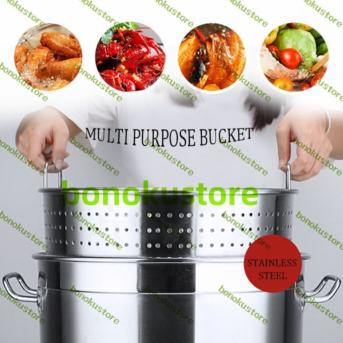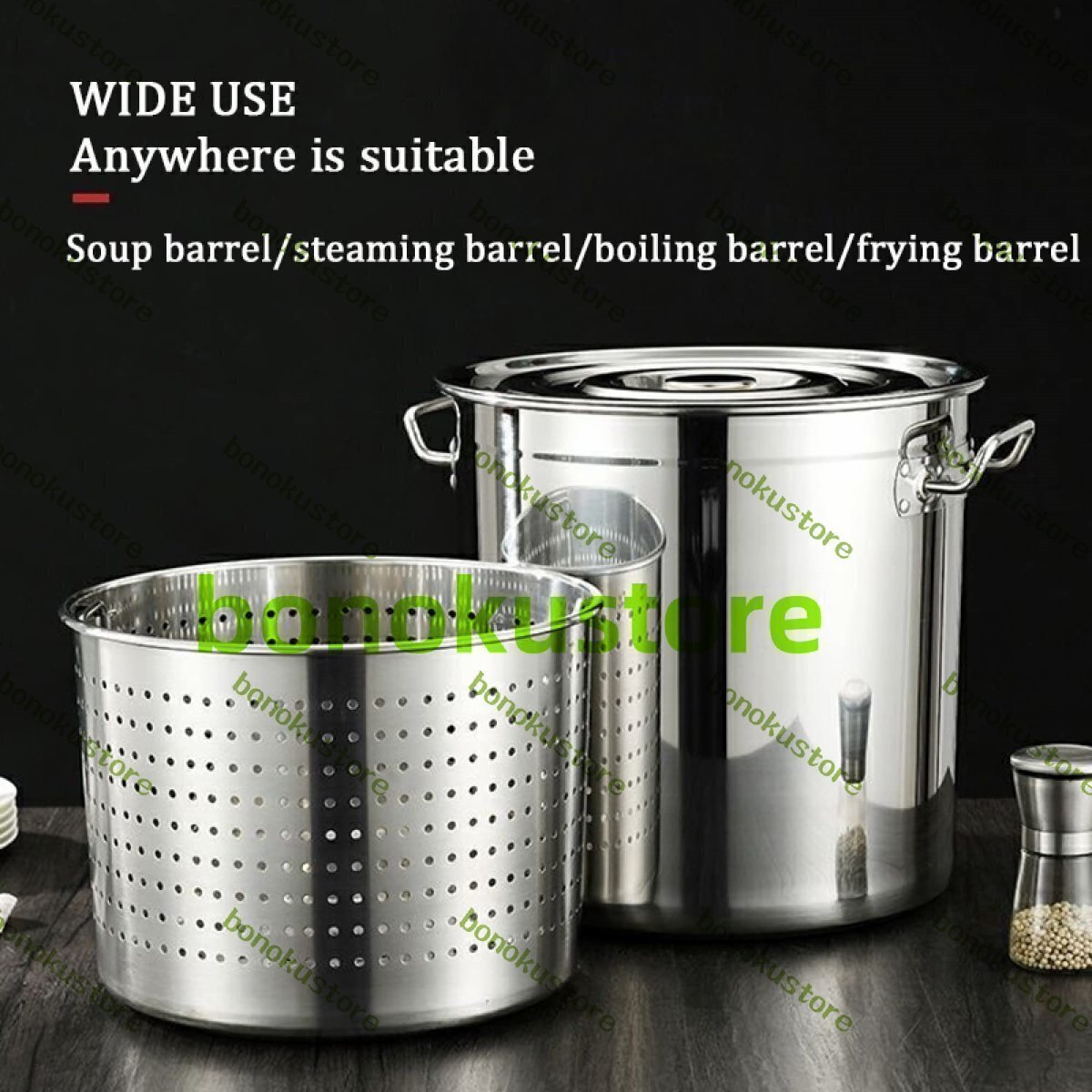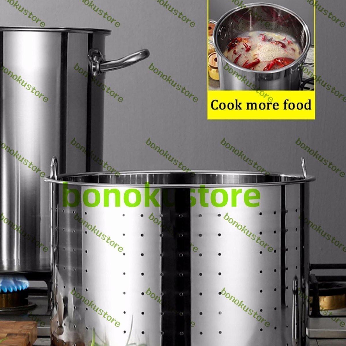 ザリガニ用ヘビーデューティストックポット シーフードターキーフライヤーポット ストレーナーバスケット付き ステンレス鋼 業務用ハマグリ蒸し器 バケット調理器具 家庭用 屋外用 / 63クォート (45クォート)