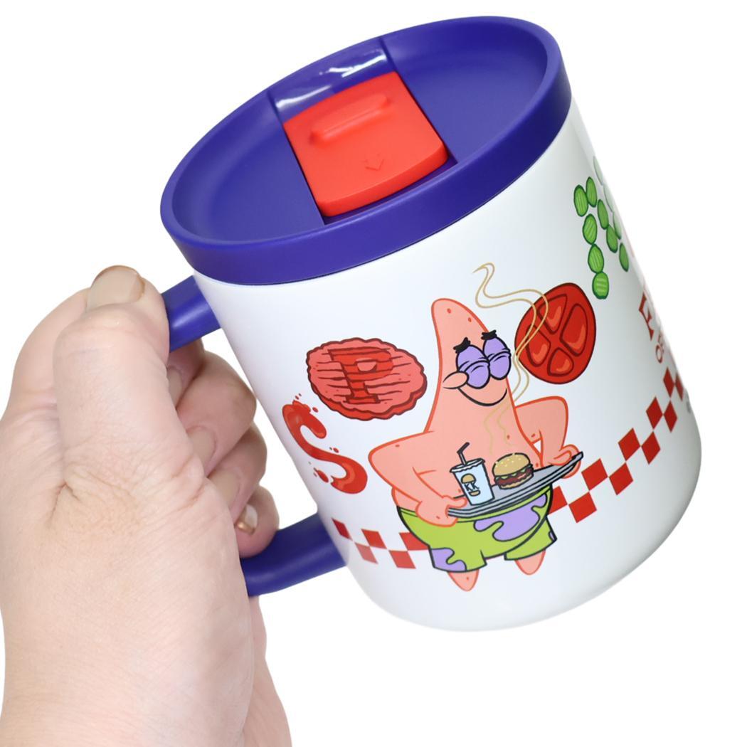 蓋付きでこぼれにくく、持ち歩きやすい 大人気[スポンジボブ]グッズにまたまた可愛いnewアイテム登場こちらはとっても可愛い[ステンレマグカップ]冷たい飲み物も温かい飲み物もそれぞれの温度をキープ片手で開閉できるフリップ式フタで開けやすいほかにもいろんなグッズがあるのでお気に入りをみつけてくださいサイズ:約115x106x88mm容量:400ml素材:ステンレス鋼(本体)、PP(フタ、スライダー、ハンドル)、シリコーンゴム(パッキン)