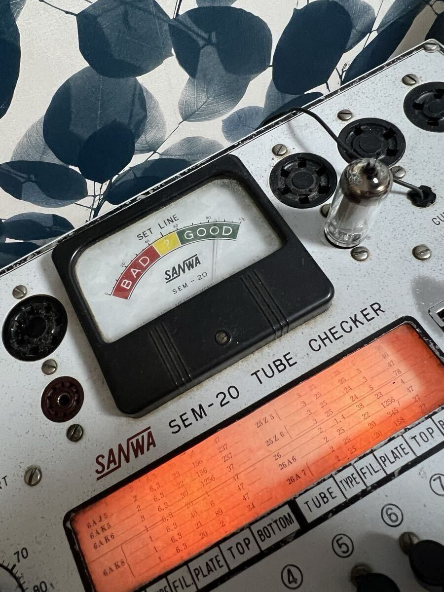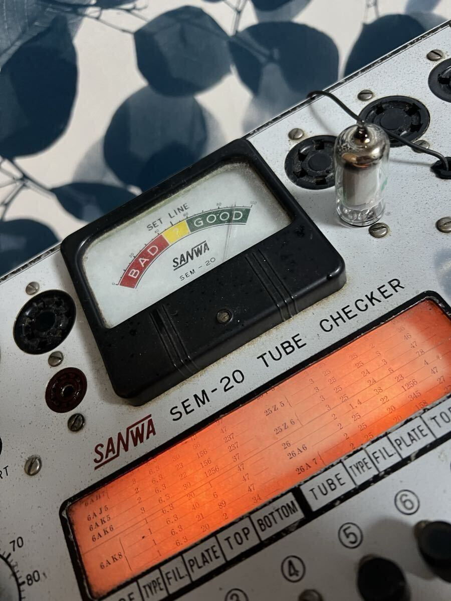 当方の試験機で同型式の未使用の真空管を試験すると80程度の値を示しますので基準として参考にしてください。