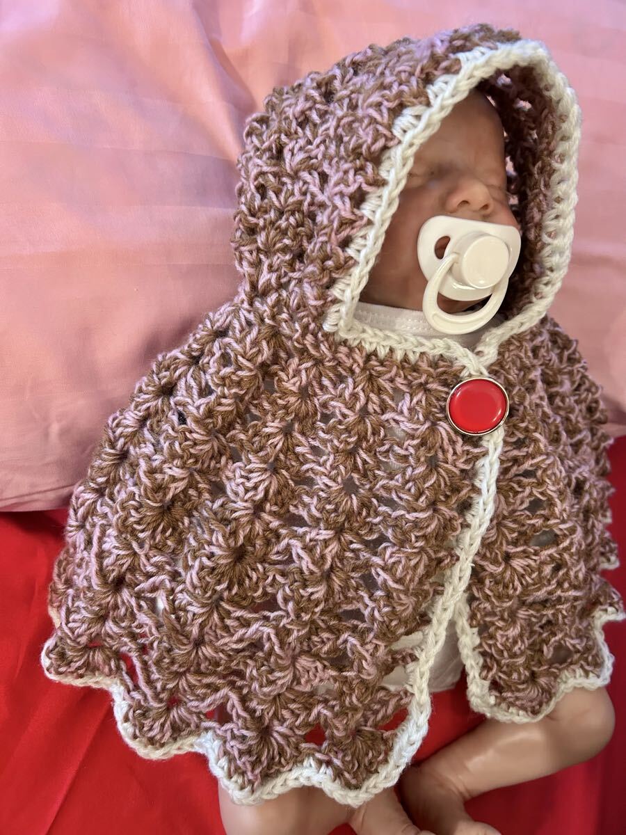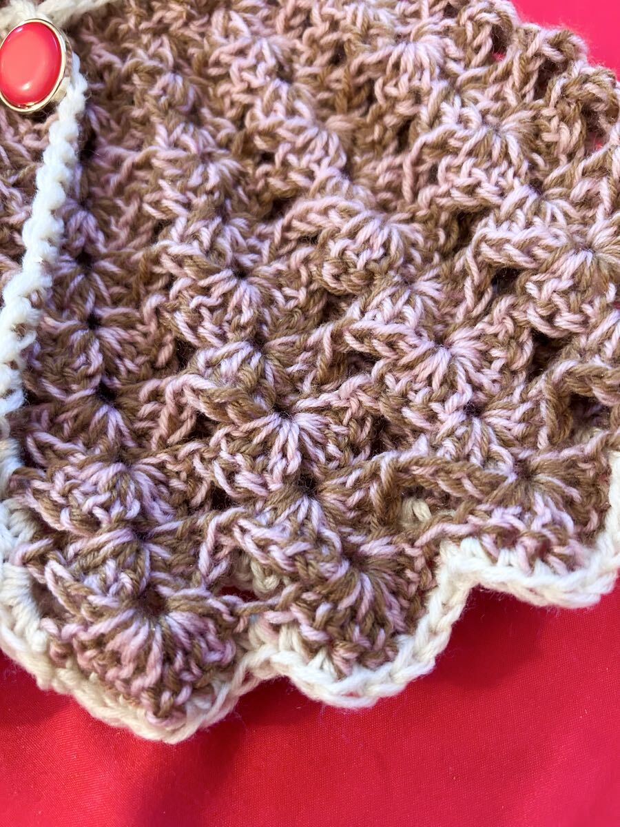 茶色とスモークピンクの2色を一緒にあんだので、見た目もふわふわ♪
