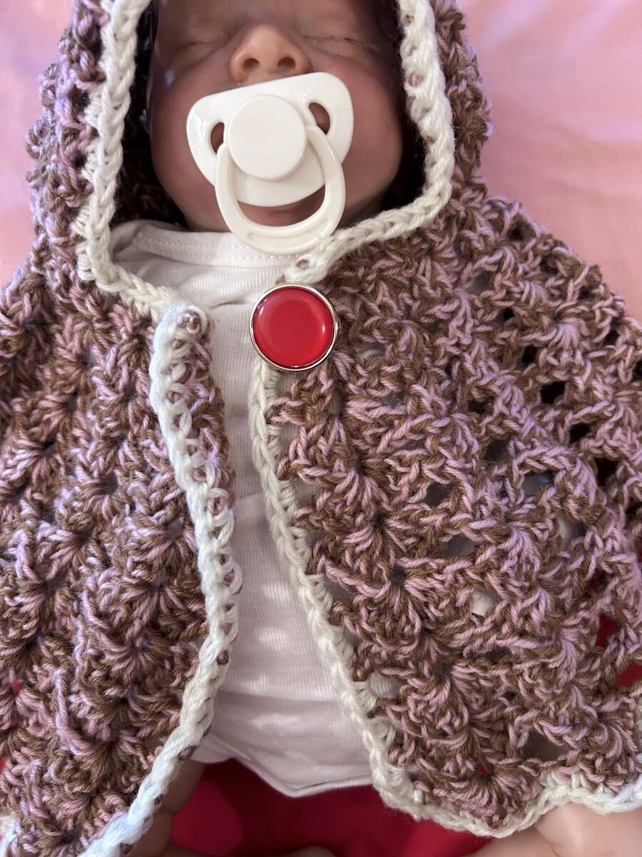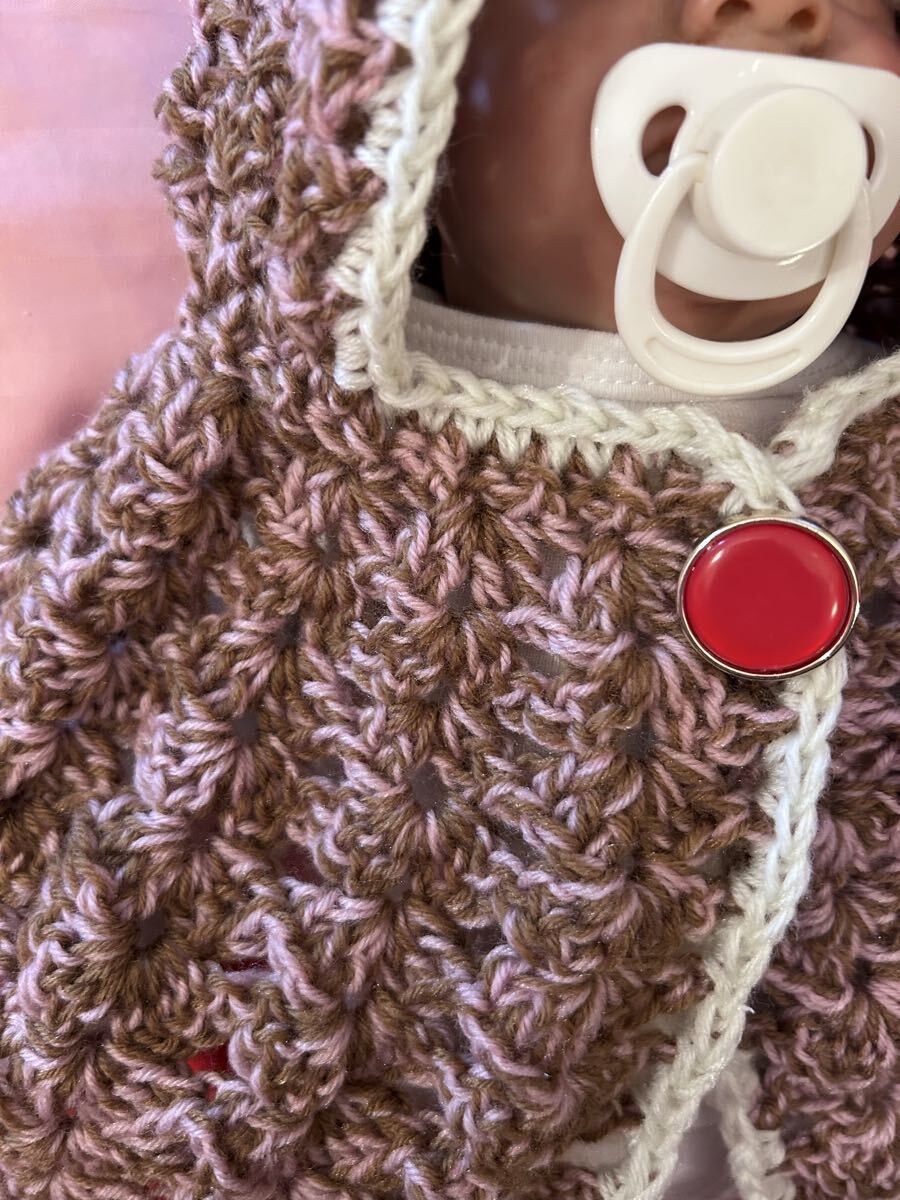 茶色とスモークピンクの2色を一緒にあんだので、見た目もふわふわ♪