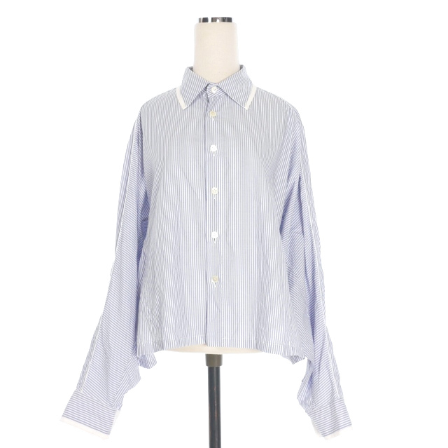 ワイズ Y's ヨウジヤマモト ストライプ ドルマンスリーブシャツ ブラウス 長袖 2 ブルー/ホワイト YR-B10-003 レディース