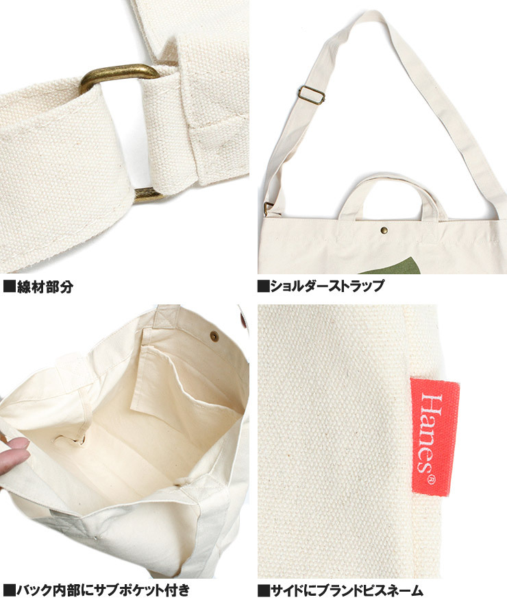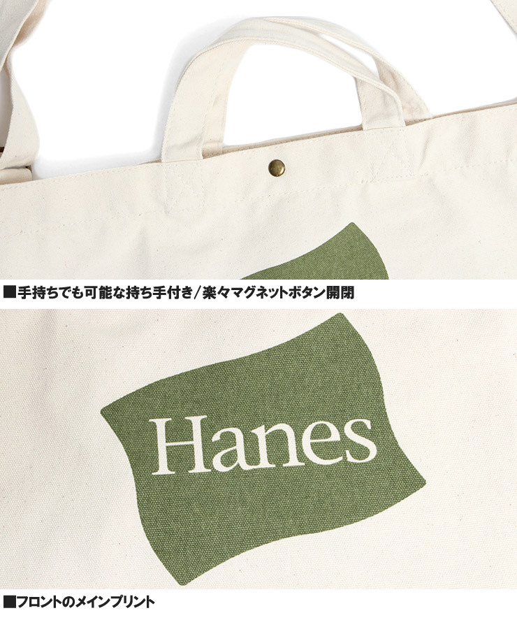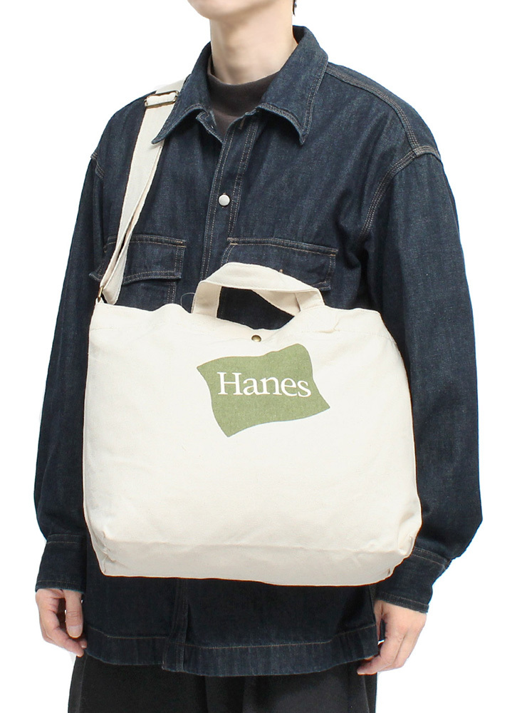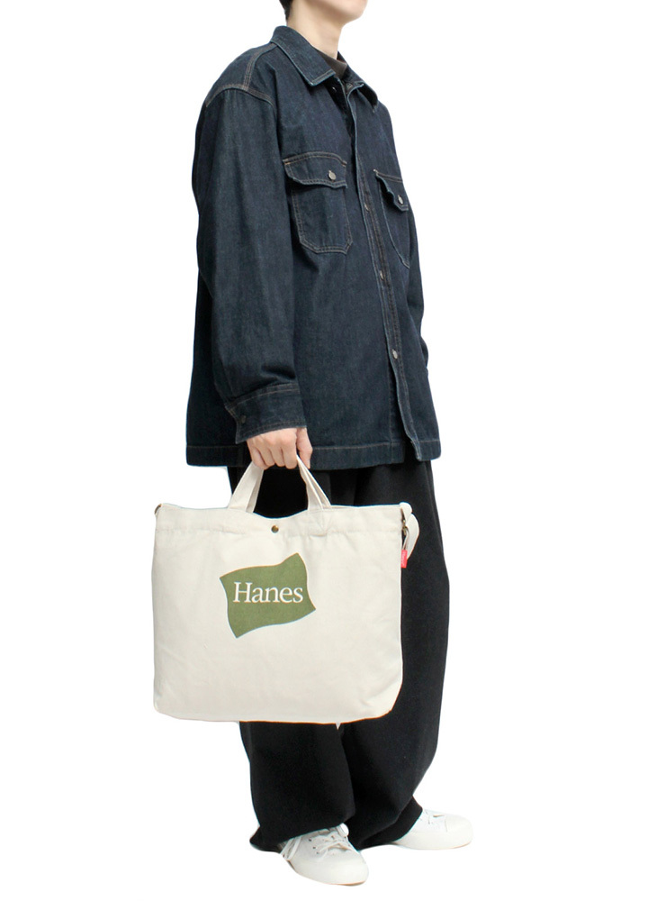 | 商品説明 | 老舗アンダーウェアブランドのHanesからおしゃれなロゴデザイン2WAYトートバッグが登場です。 |
