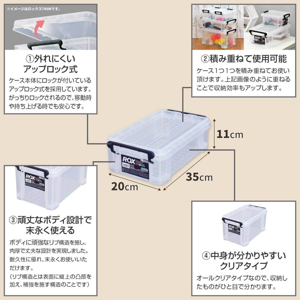 コンテナボックス 小物ケース クリアケース 300S 収納ケース ロックス プラケース 防災 日本製 ROX 耐久性に特化した収納