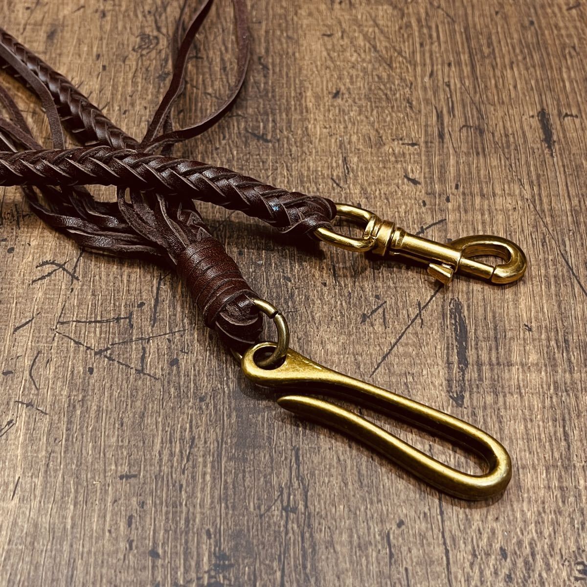 新品 ウォレットチェーン 本革 サドルレザー ウォレットロープ 手編み バイカー レザーウォレットロープ 長財布 メンズ