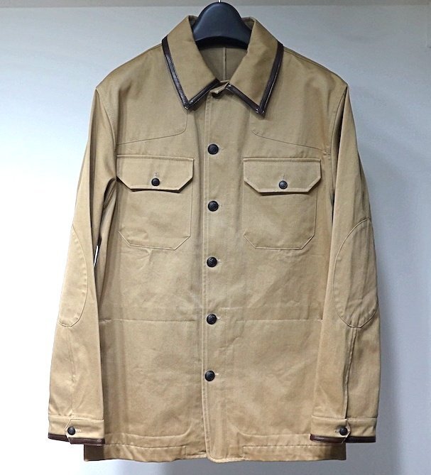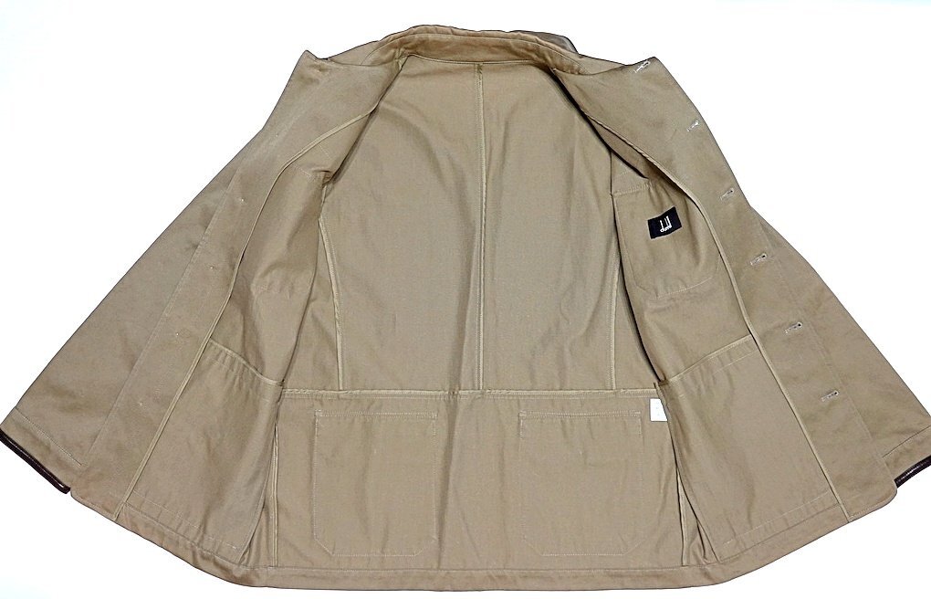 極美品 dunhill ダンヒル ラムレザートリム カバーオール ジャケット ベージュ系 コットン 羊革 メンズ L ブルゾン アウター