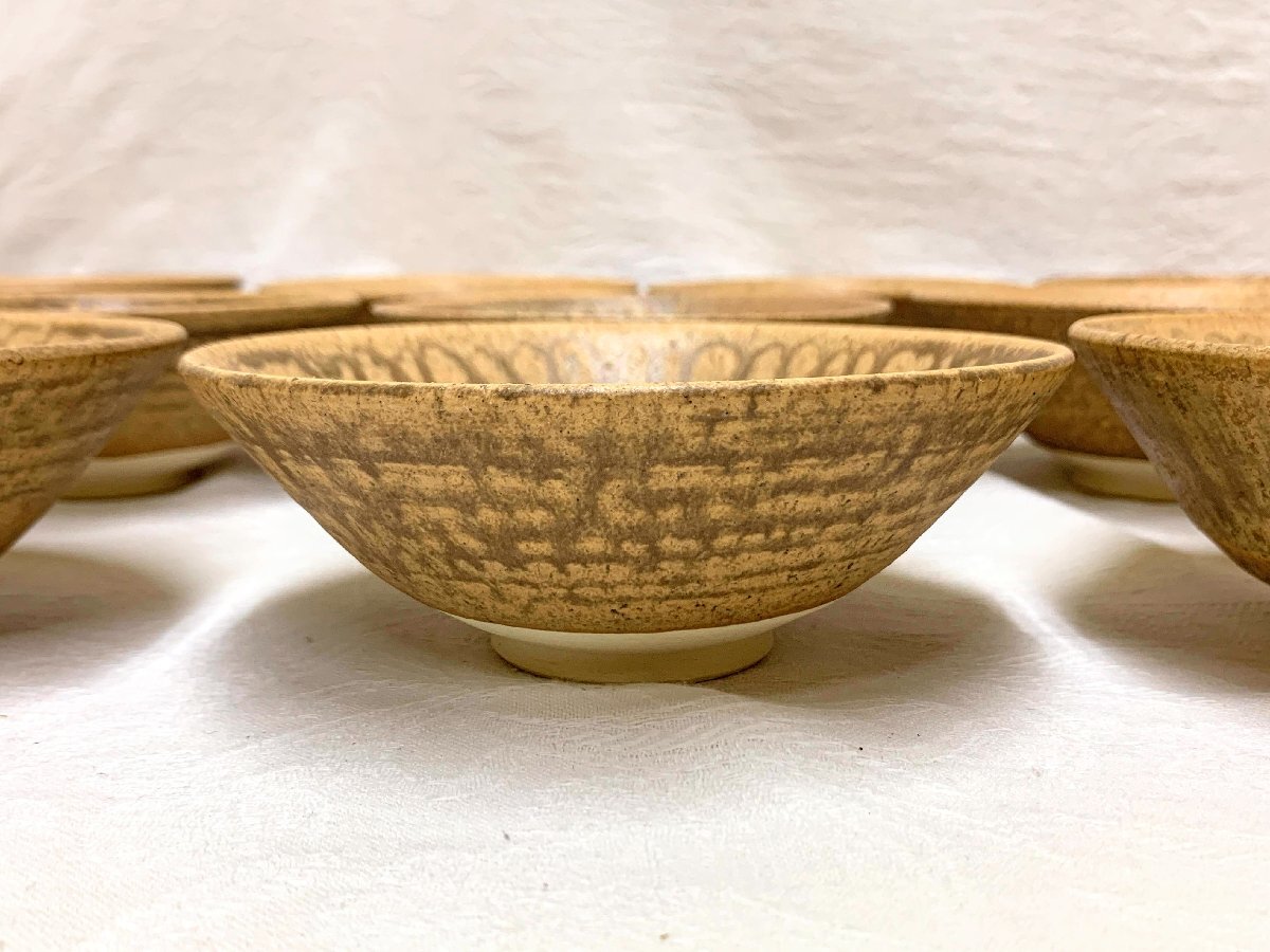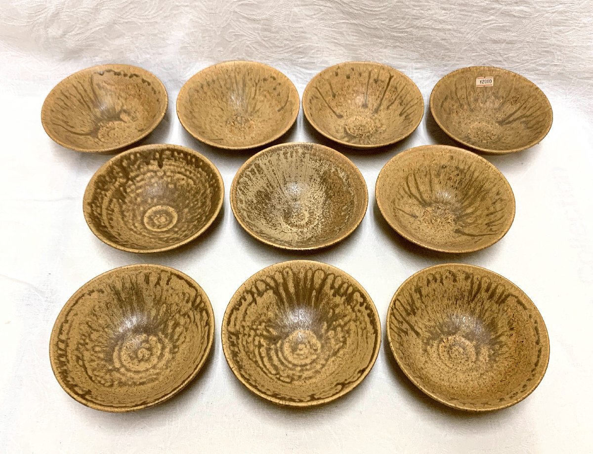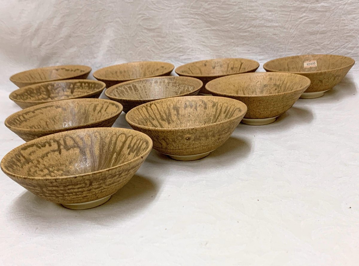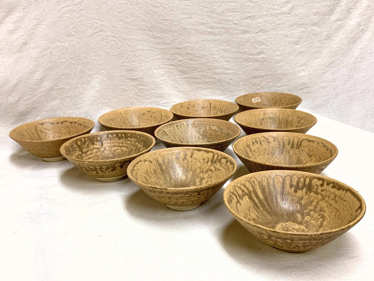 C44/京焼 数茶碗 平茶碗 10客 素焼き 茶系 加藤景山 造 未使用 抹茶碗 茶器 茶道具 長期保管品