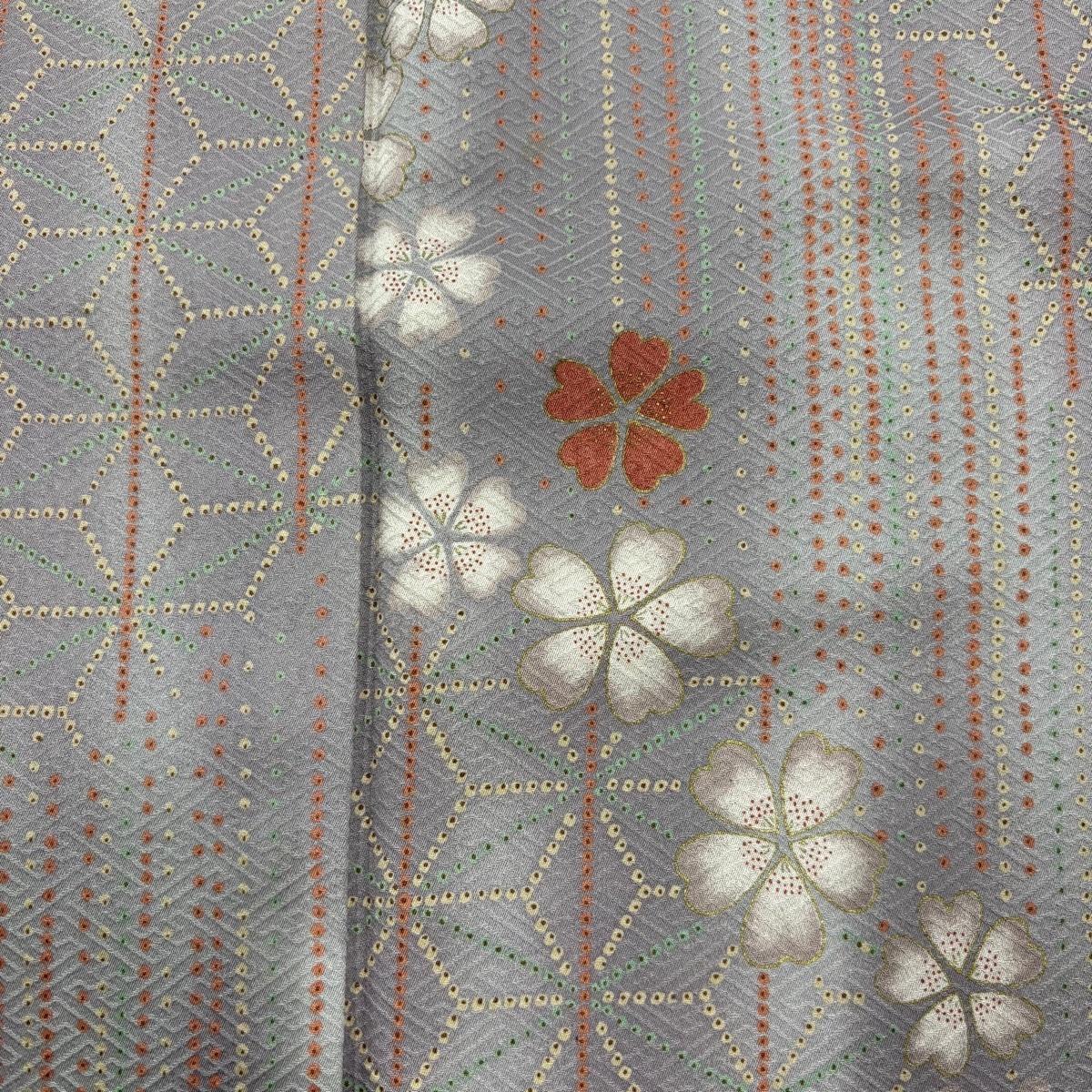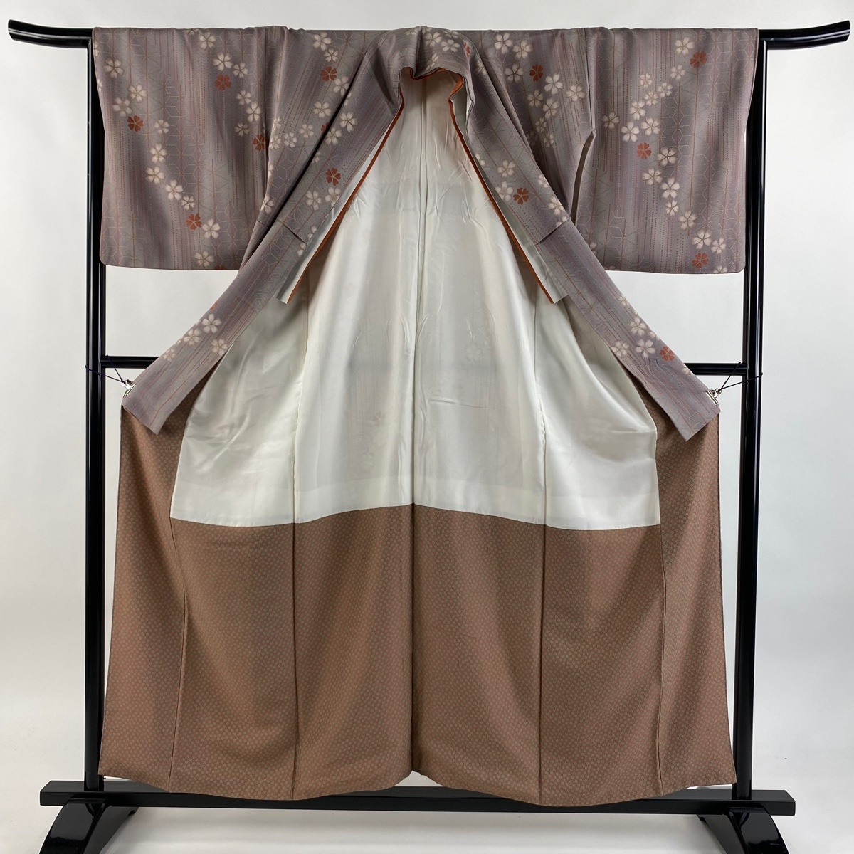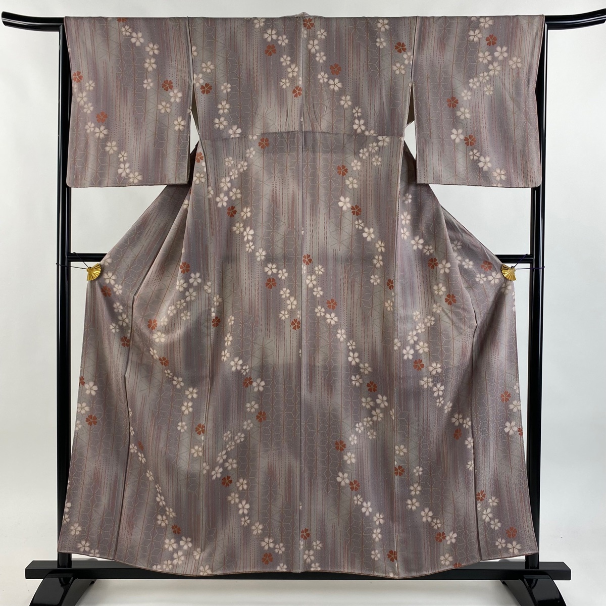| 小紋 美品 優品 桜 縦縞 金彩 ぼかし 灰紫 袷 身丈157.5 裄丈65 M 正絹 【中古】 |