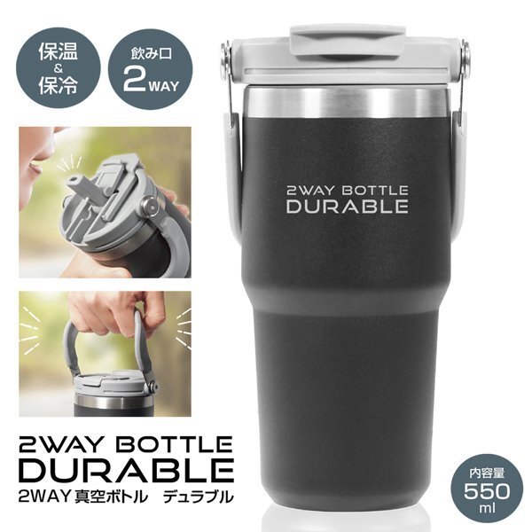 タフボトル ストロー付き 保冷 保温 真空ステンレス 蓋付き ハンドル付 550ml マグボトル 直飲み 送料無料- 60N◇ 真空ボトルデュラブル