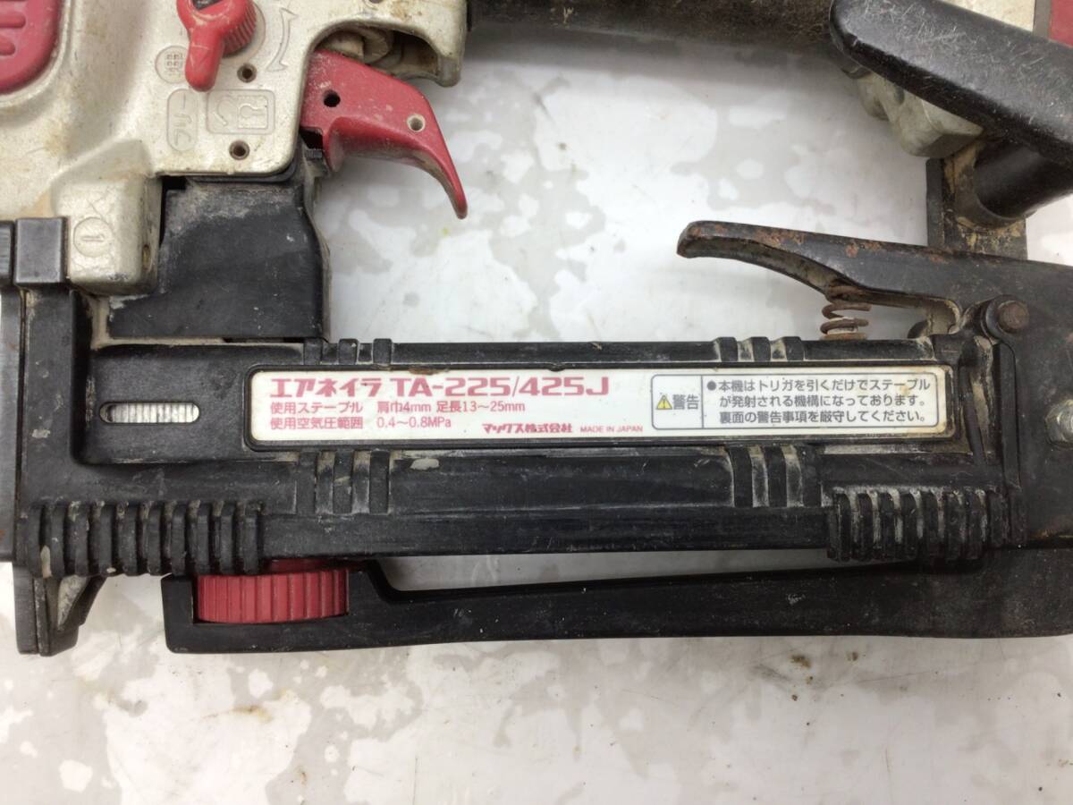 | 機能特徴 | 寸法 高さ(H)×幅(W)×長さ(L)185x63x248(mm) 質量1.0kg ステープル装填本数100本(1連) 使用空気圧0.4~0.8MPa(約4~8kgf/cm2) 使用ホース内径7mm以上 安全装置メカニカル方式、トリガロック装置 |
