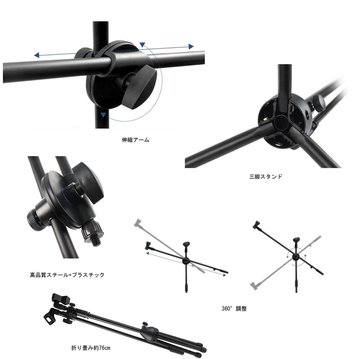 マイクスタンド ストレート ブーム 持ち運びしやすい、 360°高さ調節可能 スチール材とナイロン材 マイクアーム 折りたたみ 軽量 伸縮アーム マイクホルダー タマ ブーム マイクロフォン スタンド ストレート 直立 三脚スタンド 会議  忘年会 演奏