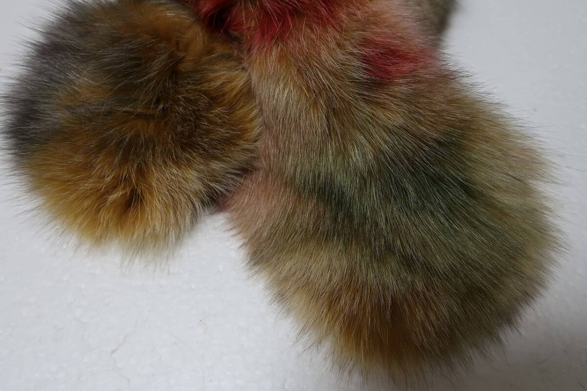 新品 希少色 ブルーフォックス マルチ染 チョーカー 長い差し毛と柔らかな綿毛が心地良い、人気のフォックスを贅沢に使用。 カジュアルスタイルに限らず、シックな雰囲気にも使っていただける、活躍度の高いアイテムです。 弧を描く形で首周りにソフトにフィットします。 染色に手間がかかるため、市場流通数の少ないマルチカラーです 色々な場面で活躍でき毛足の長いフォックスならではのあたたかさと華やかさを堪能できる逸品です。 素材 フォックス サイズ 約 80cm×約 11cm(最大部) 毛足含む こちらの商品は新品・未使用品ですが展示会使用商品です アウトレット扱いでお願いいたします 紙タグなどが付属しません。 また、保管上に出来た、細かい傷などがある場合がございます 出品時に確認はしておりますが、見落としがある場合もありますので、神経質な方は入札をご遠慮下さい。 |
