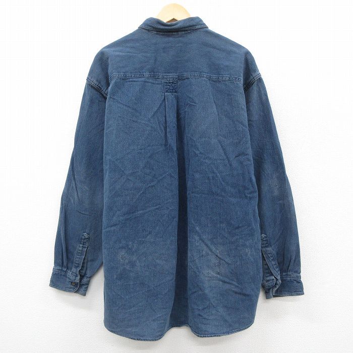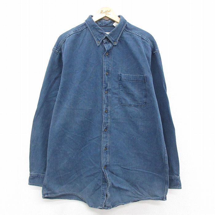 【商品名】 XL★古着 エルエルビーン 長袖 ブランド シャツ メンズ 90年代 90s 大きいサイズ ロング丈 コットン 紺【spe】