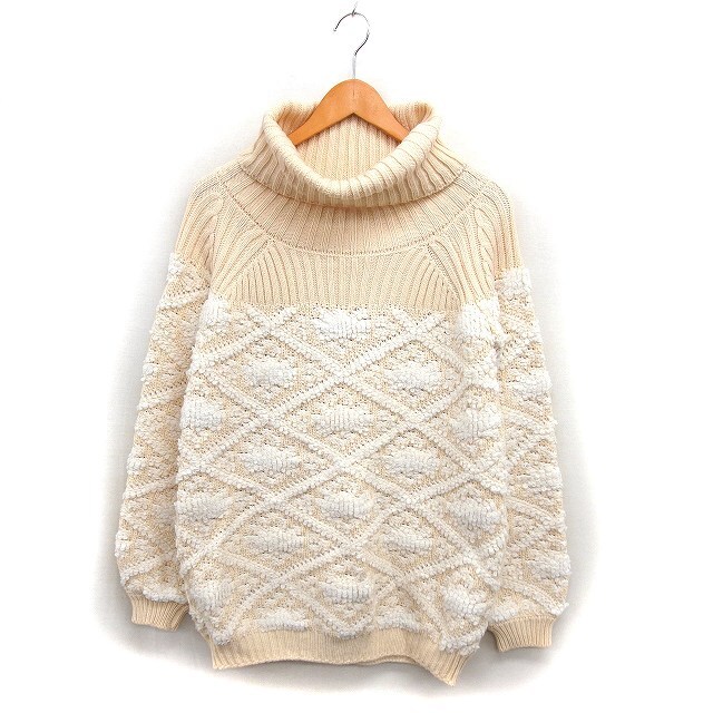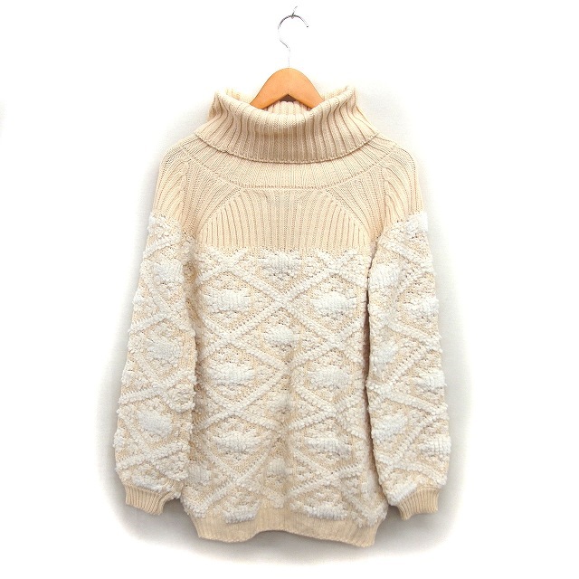 ダズリン dazzlin ラグランスリーブ ループニット セーター オフタートル リブ 長袖 F ベージュ /NT28 レディース