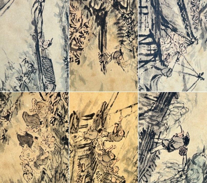 富岡鉄斎が晩年に到達した詩情と筆致が、漁師たちの自由でのびやかな暮らしの中に映し出されています。