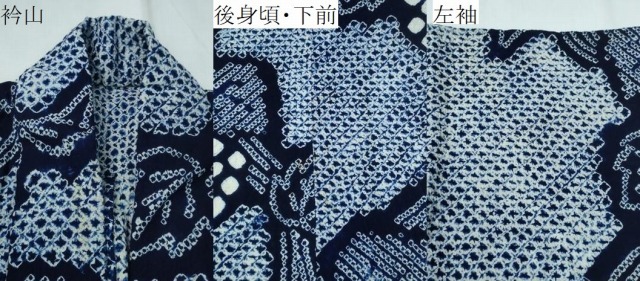 | 【綿】 状態は接写画像のように衿山・後身頃・下前・左袖に薄い汚れがございますが その他特に目立ったシミ汚れなどもなく大変良い状態です。 人気の高い“有松鳴海絞り”の浴衣でございます。 “鳴海絞り”ならではの表情を生み出す立体感と 淡いぼかしで息を吹き込まれ、 今にも動き出しそうな迫力を放っております。 夏祭りや花火大会、これから増えるイベントに連れ立って、 より夏をお楽しみ下さいませ。 大変上質な逸品になります。 お安く出品致しますので、是非この機会にいかがでしょうか?