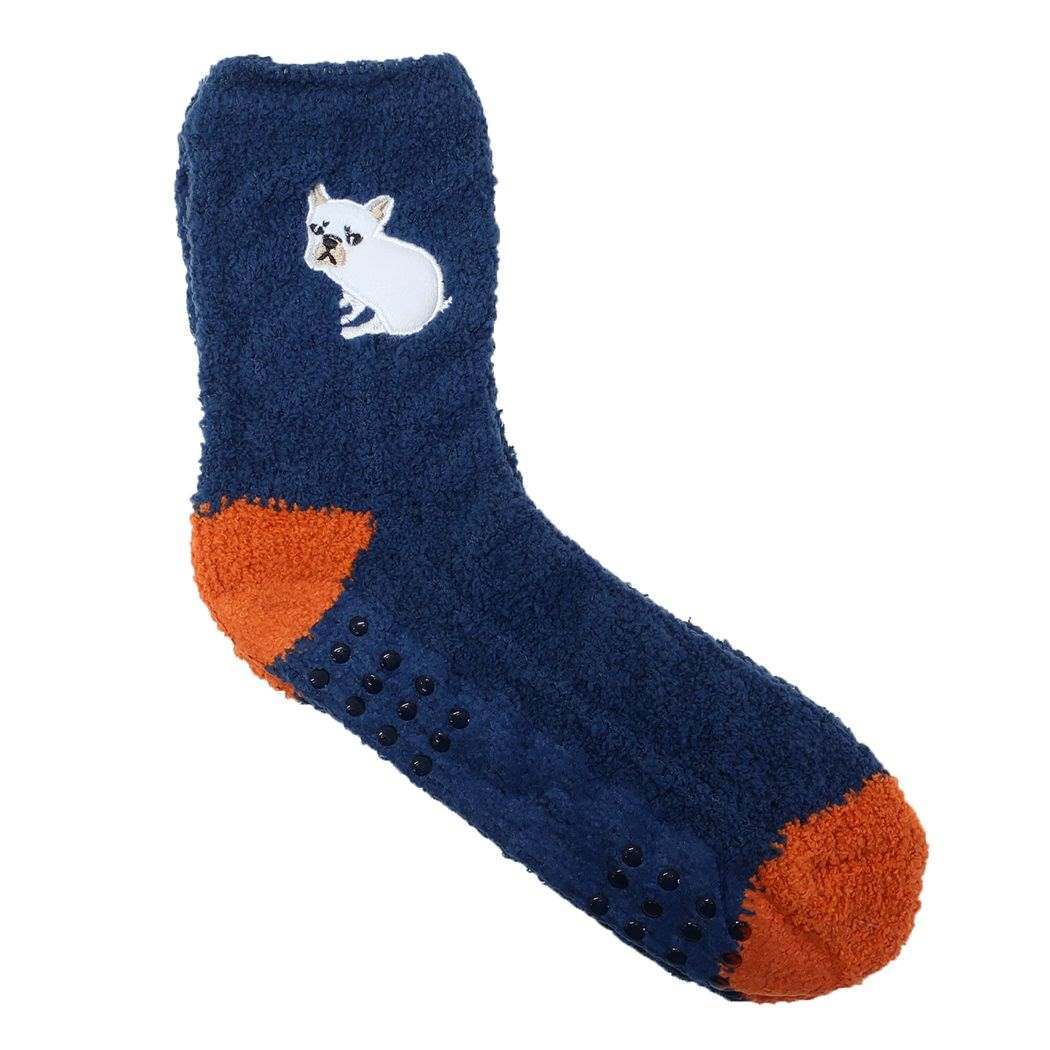 靴下レディース アップリケブルタン ルームソックス ネイビー ウォーマー雑貨