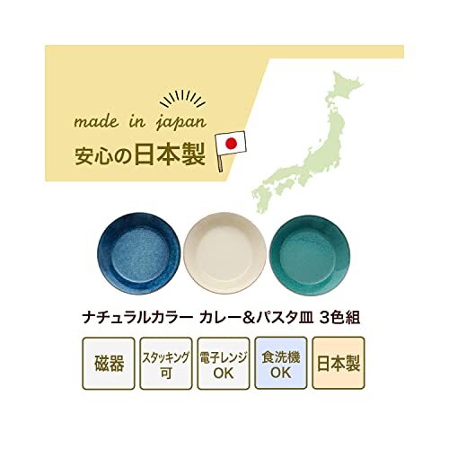 カレー皿 ブルー・ホワイト・グリーン 約径20.3×高4.3cm ナチュラルカラーカレー&パスタ皿(3色組) 20201235