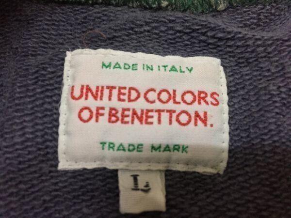 ユナイテッドカラーオブベネトン UNITED COLORS OF BENETTON ワッペン 長袖スウェットトレーナー メンズ ITALY製 ビッグシルエット L 青