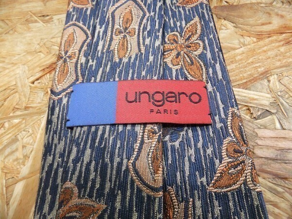 ungaro ウンガロ メンズ 日本製 シルク100% アート 花柄 総柄 ネクタイ ネイビー です。