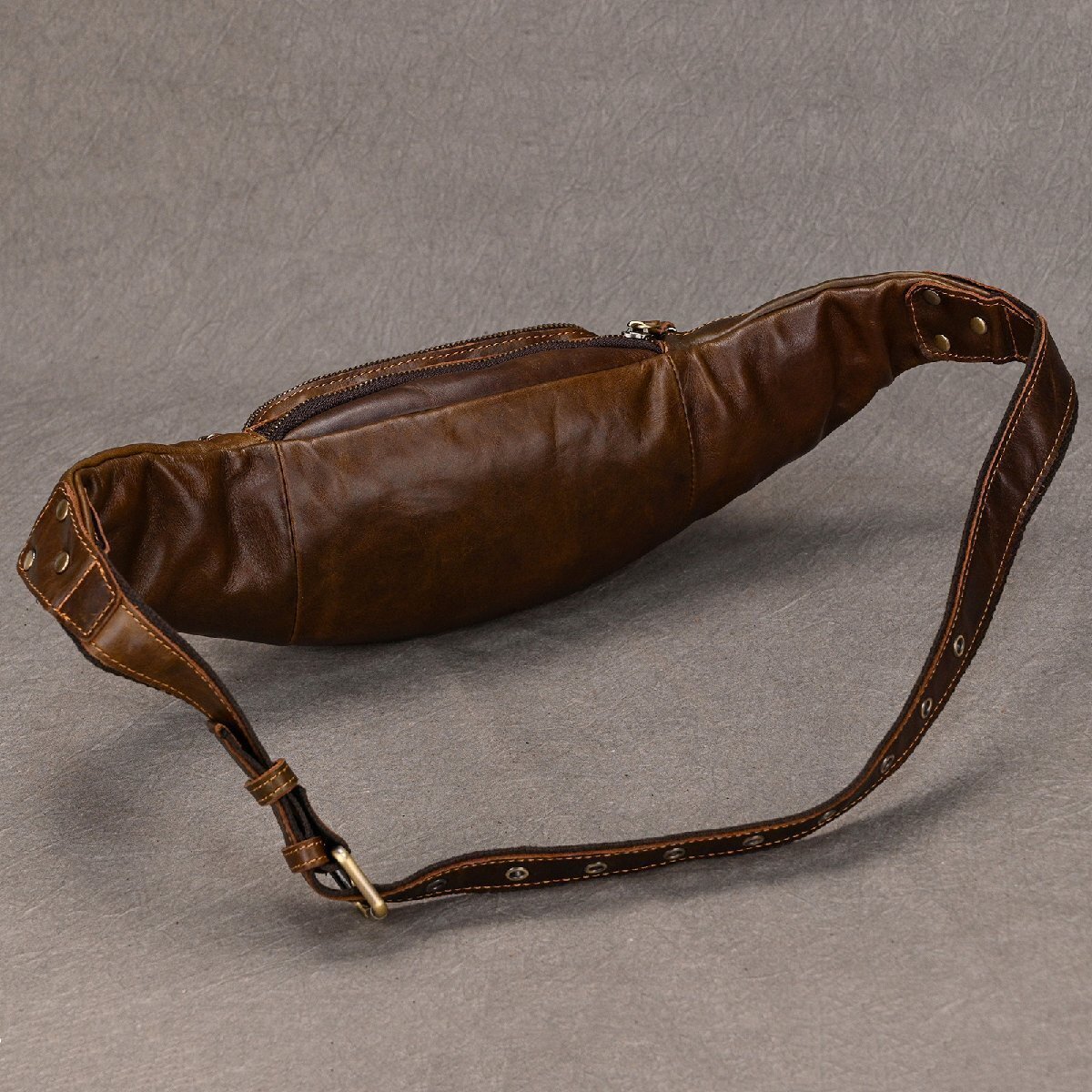 美品!本革 レザー 多収納 斜め掛け 高級感 大容量 長財布収納 旅行 アウトドア 自転車 軽量 頑丈 プレゼント ウエストバッグ ##A07
