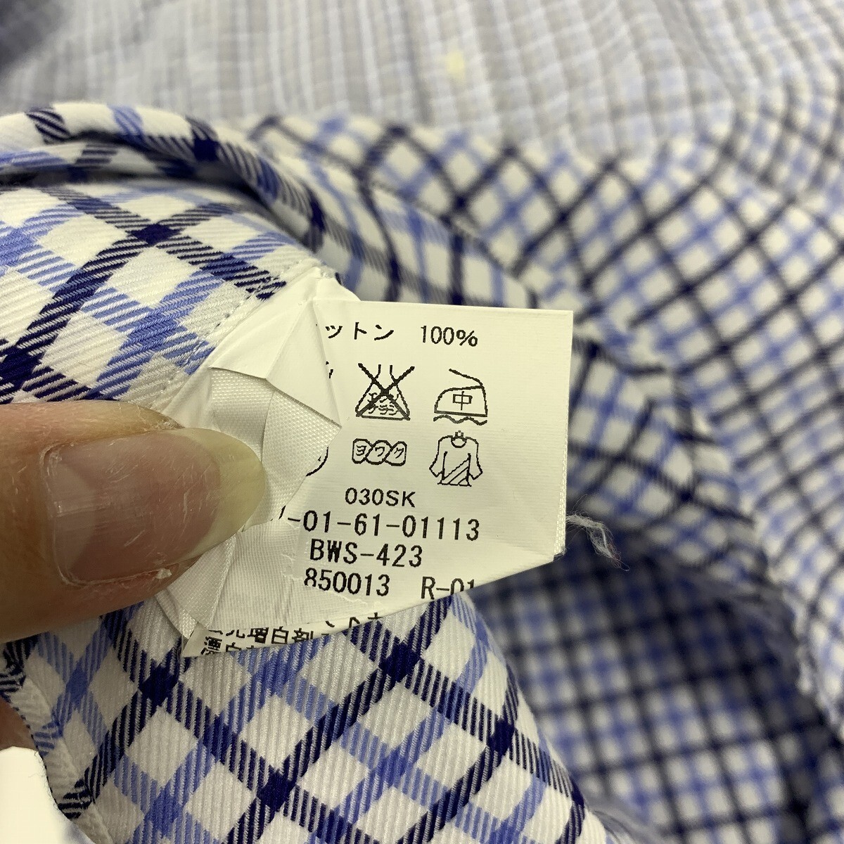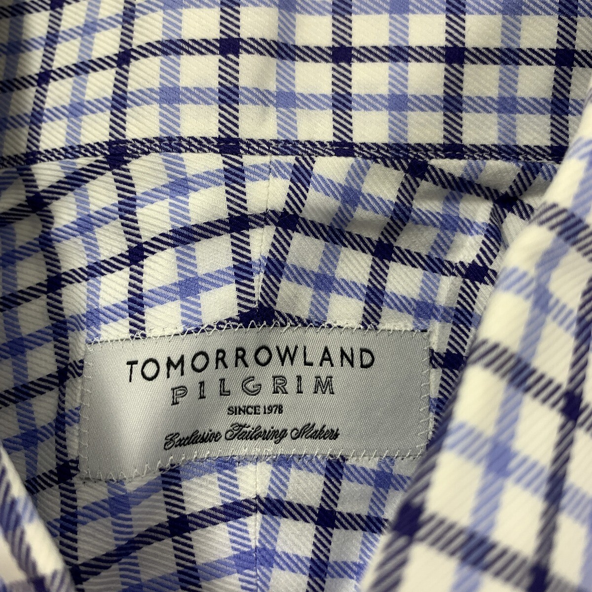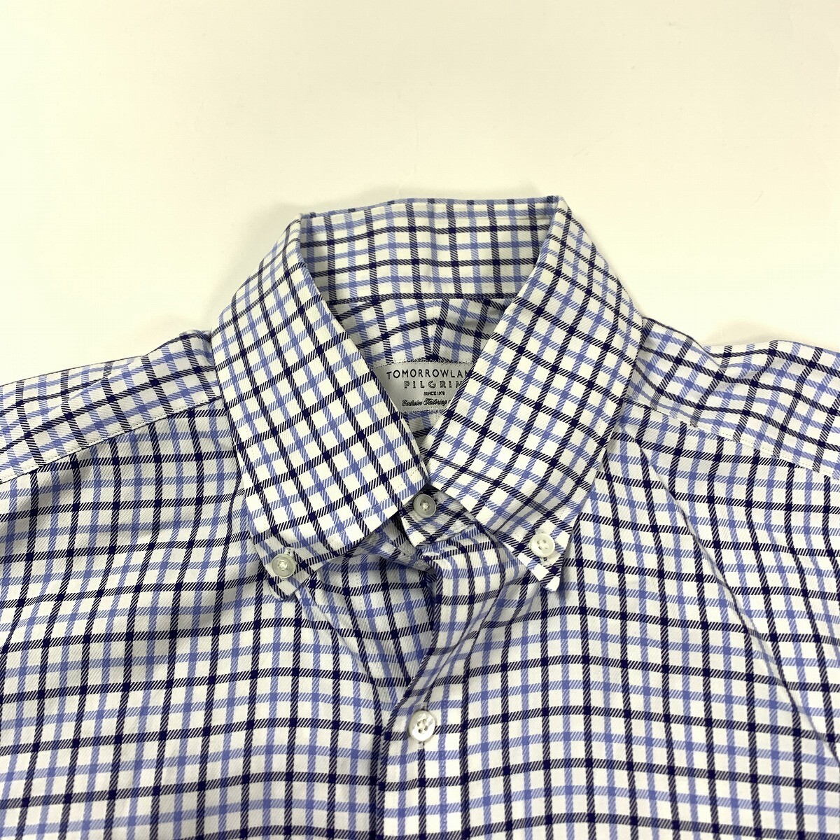 TOMORROWLAND PILGRIM トゥモローランド 長袖シャツ 綿 コットン チェック ボタンダウン 白 青 水色 ホワイト ライトブルー 41/16 YC1336