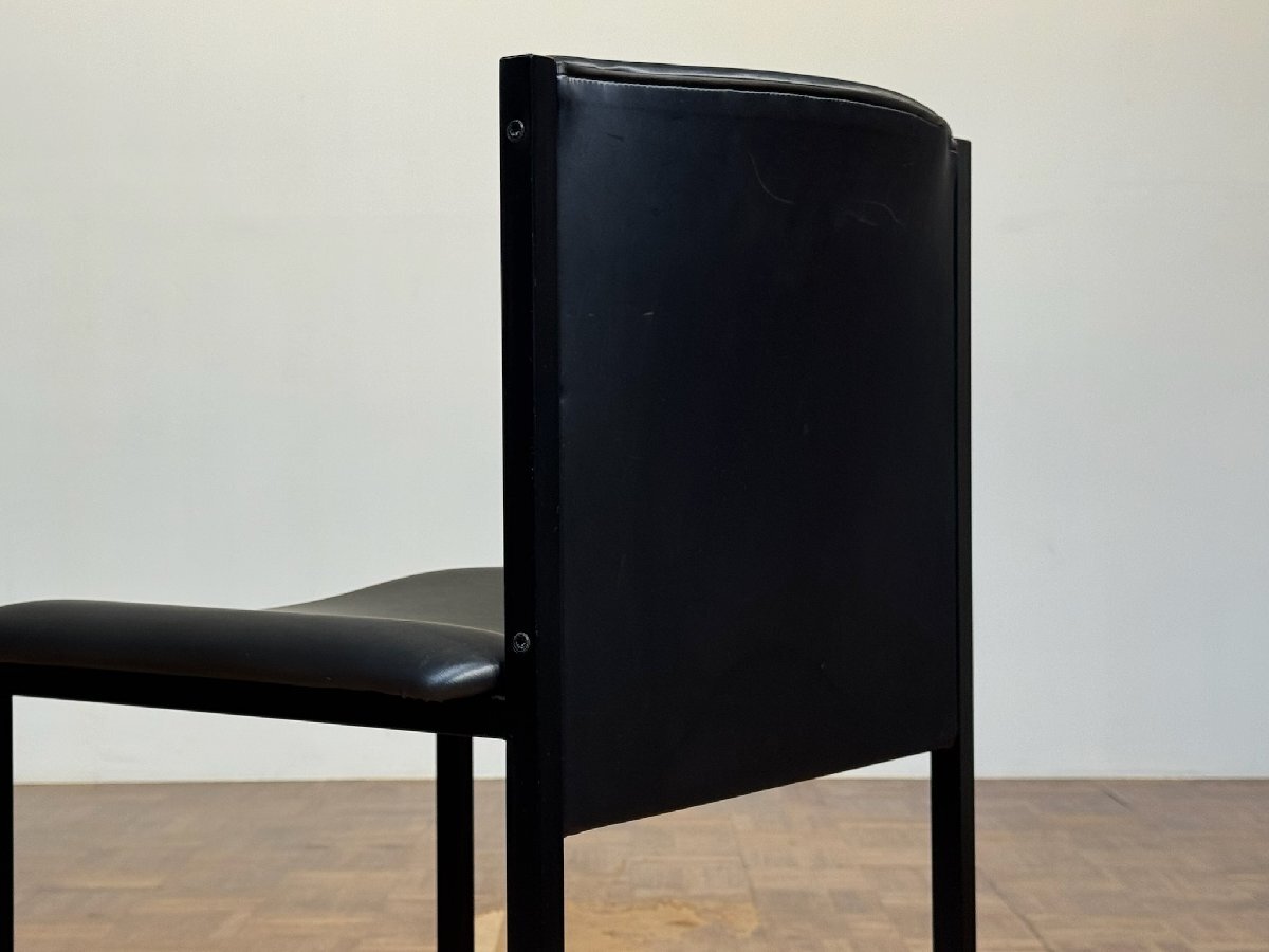 直線を際立たせた端正なシルエットのフレームに、身体に馴染む湾曲線を描いたポリウレタンフォーム製のシットポケット構成と、フレームを覆い尽くすたっぷりとした座面クッションの構成で、エッジーなモダン感とクッション豊かなやわらかなデザインを具有させた、リリースと同時にブランドを代表するセラーとして君臨する名作ダイニングチェア。Cassina ixc. より。傷汚れ耐久性の高いPUレザー仕様品。