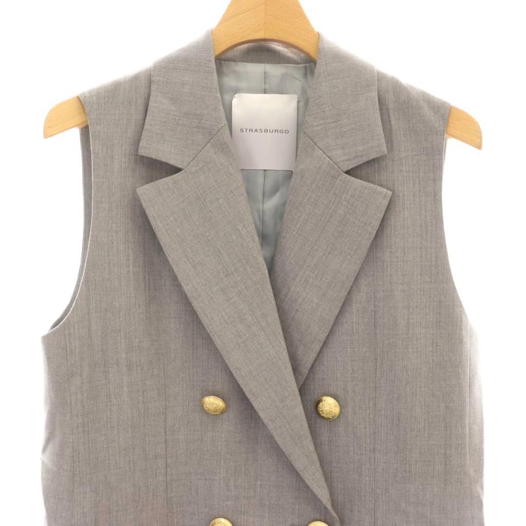 ストラスブルゴ STRASBURGO 金釦ウールラペルドジレ ベスト ダブル 36 グレー /AT ■OS レディース