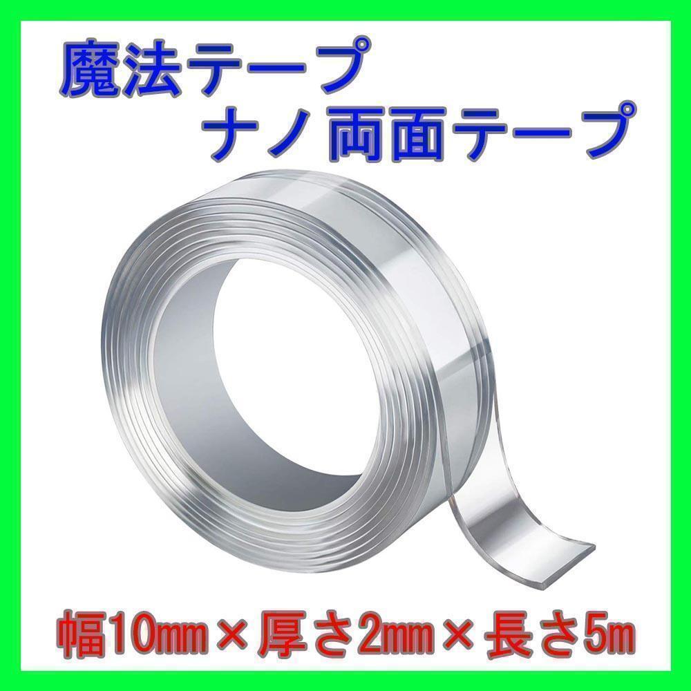 『ナノテープ 両面テープ 魔法テープ 超強力 粘着性 透明 防水 はがせる 繰り返し 滑り止め 地震固定テープ 長さ5m 幅1cm 厚さ2mm』です。