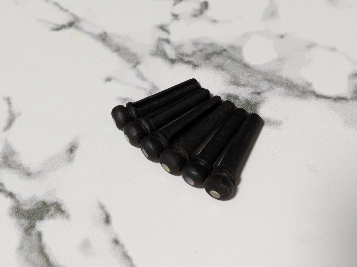 色が濃いローズウッド素材のブリッジピン、6本です。