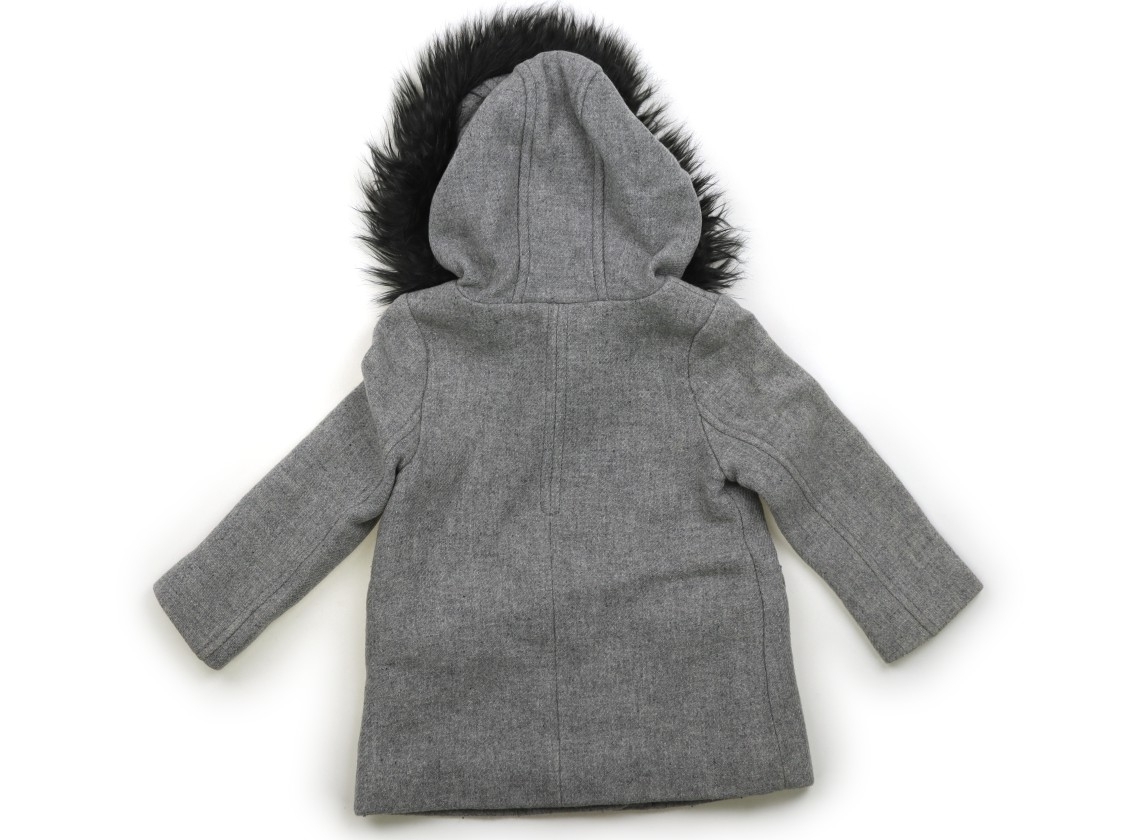 ウール混素材。ファスナー・スナップボタン開き。中綿入り。フードは縫い付けです。実際のサイズ表記は、104cm。薄いシミがいくつか見られ、全体的に毛羽立ちがあります。