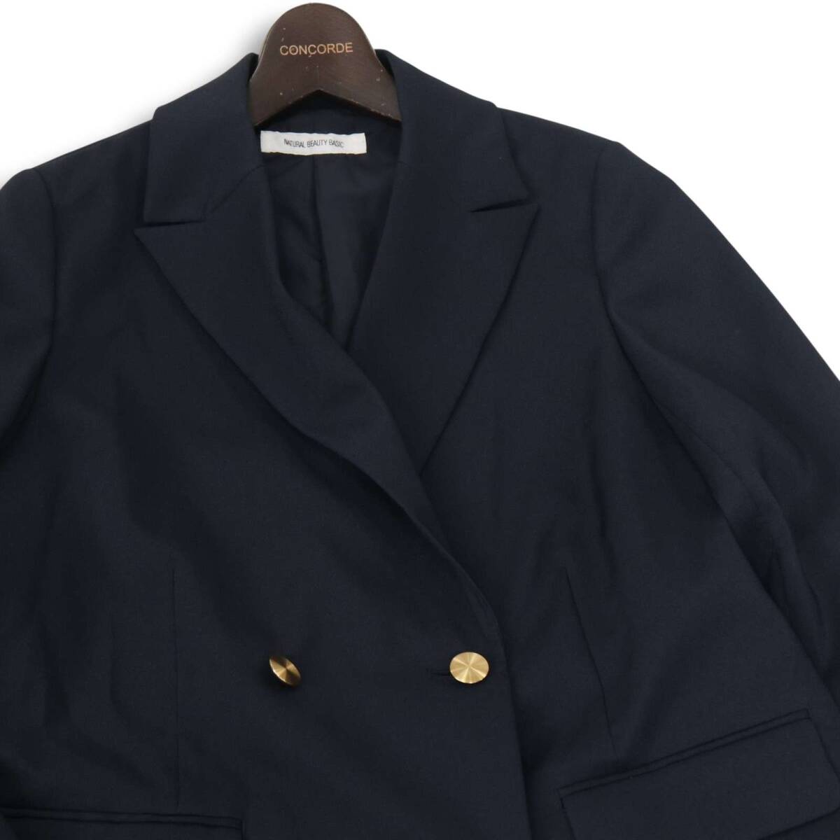 24AW★ NATURAL BEAUTY BASIC 通年 総裏 ダブルブレスト ボクシー ジャケット ブレザー 紺ブレ Sz.S レディース ネイビー