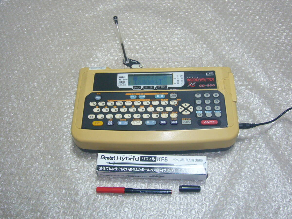 即決 動作確認済 CD-200 ワードライタ 電源、黒ボールペン1本、替芯(黒)10本、赤ボールペン1本付 マックス ワードライター